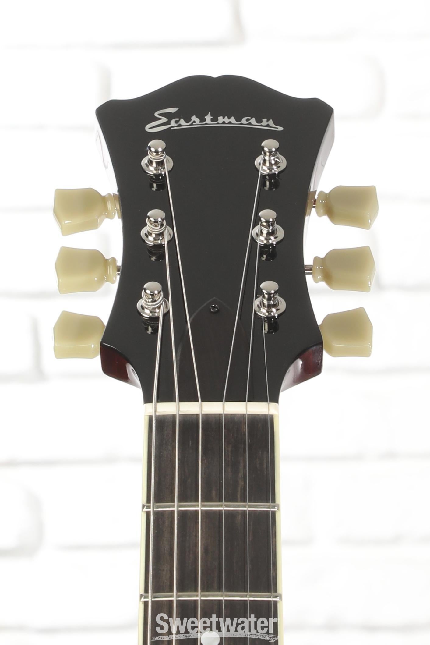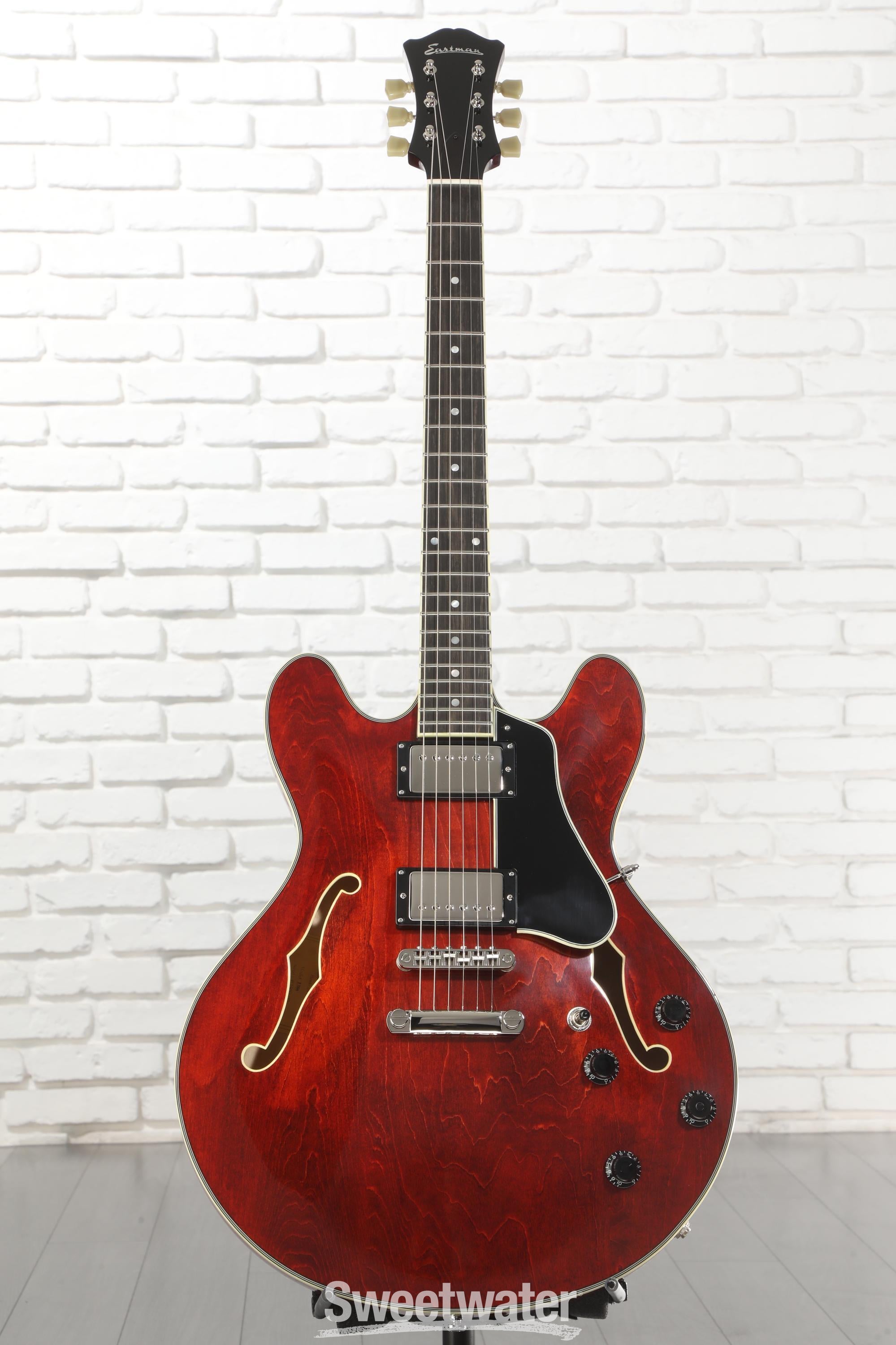 The Thinline series represents Eastman’s take on a genuinely classic semi-hollow design that all guitarists know and love — and the handsome T386 makes a bold statement! With a semi-hollow body carved to that iconic double-cutaway shape, reinforced with a feedback-fighting center block, and topped in a vibrant maple veneer, this comfortable Thinline guitar offers a low-profile feel and vivid organic voicing that perfectly sets the tone for its electronic outfit. The pickups at hand? An exceptional set of Kent Armstrong humbuckers, popular with Sweetwater guitarists for their smooth tone and versatile output. Fully equipped for sonic contouring to your heart’s content with per-pickup Volume and Tone controls, the T386 comes crafted to curate a classic dual-coil sound to suit myriad musical directions. It plays like a dream, too, courtesy of Eastman’s Traditional Even C neck profile and 12-inch-radius ebony fingerboard. Fully bound and appointed with rock-steady Gotoh and Pingwell hardware, the T386 stands to deliver marvelous musical, functional, and stylistic appeal to every stage it sees.