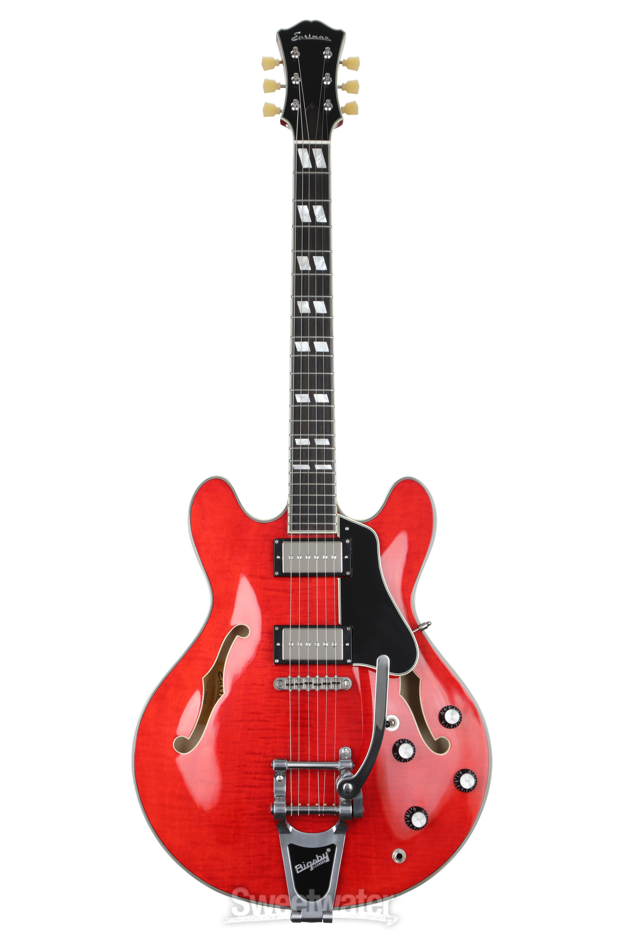 Eastman T486B-RD Thinline Semi-hollowbody Electric Guitar Features: