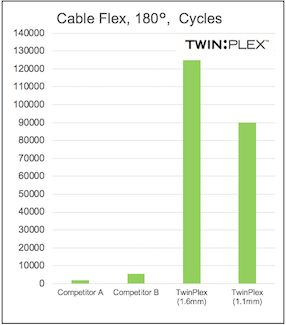 - Flex Test — Shure’s medical-grade TwinPlex spiral test cables have been stretched, bent, and smashed to their limit in the name of audio excellence. The breaking point has been shown to be one so extreme that most performers and engineers are likely never to reach it in their careers. Even after years of use and abuse, TwinPlex cables are engineered to deliver pro sound and performance without the memory effects, cracking, and stiffening common to lesser cables.