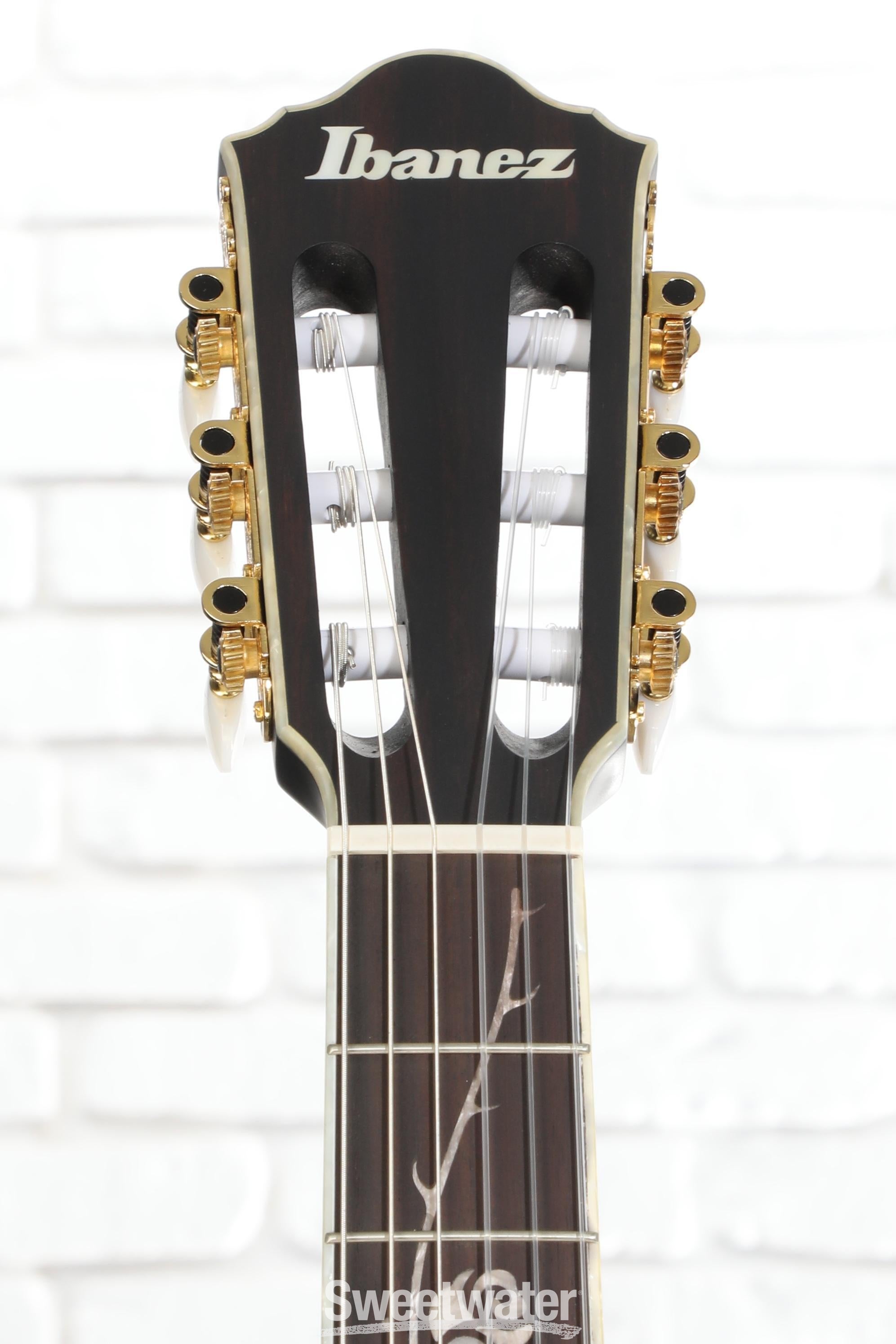 - Ibanez AEQ210TF preamp and Fishman Sonicore pickup provide a rich, snappy nylon-string tone when plugged in