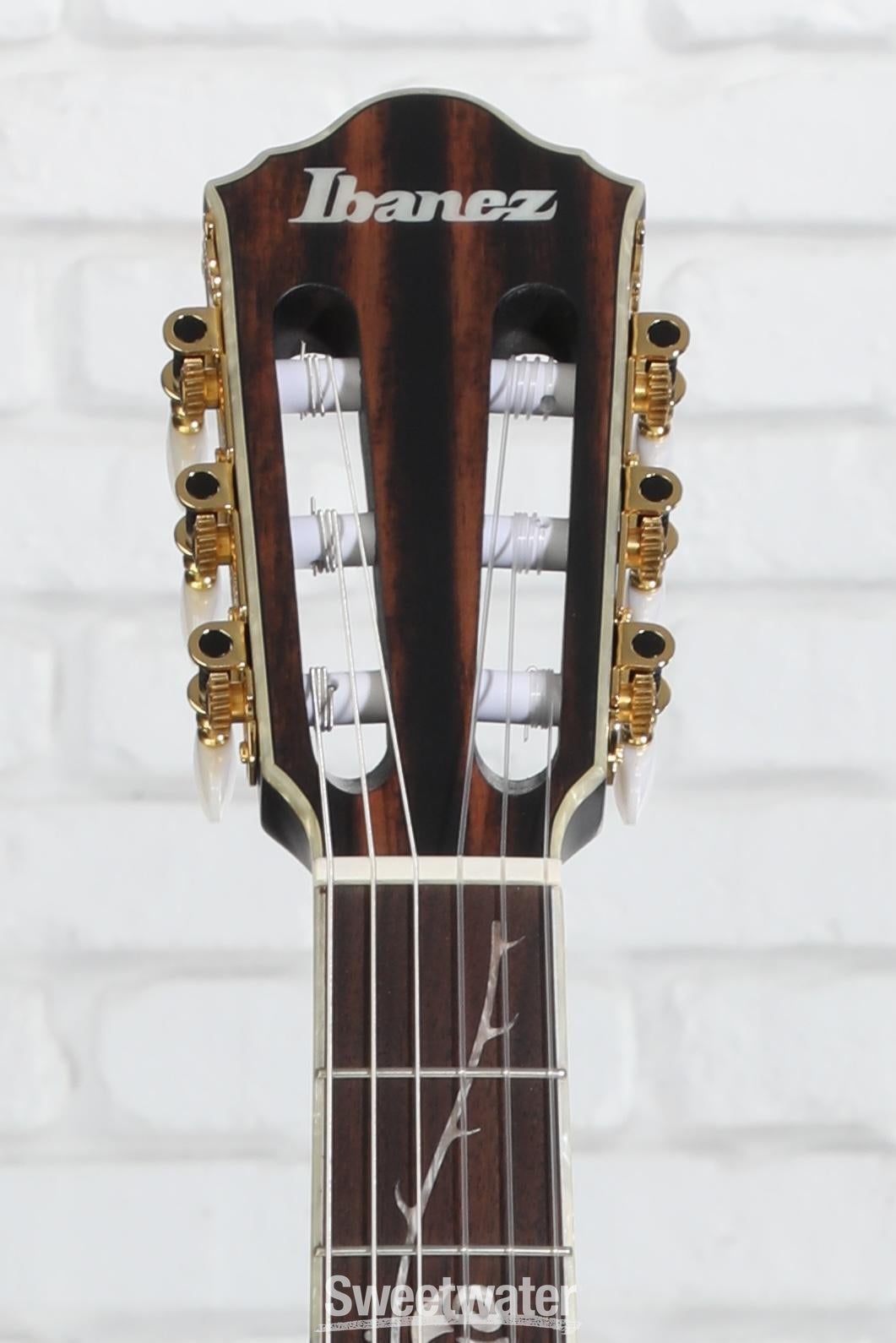 - Ibanez AEQ210TF preamp and Fishman Sonicore pickup provide a rich, snappy nylon-string tone when plugged in