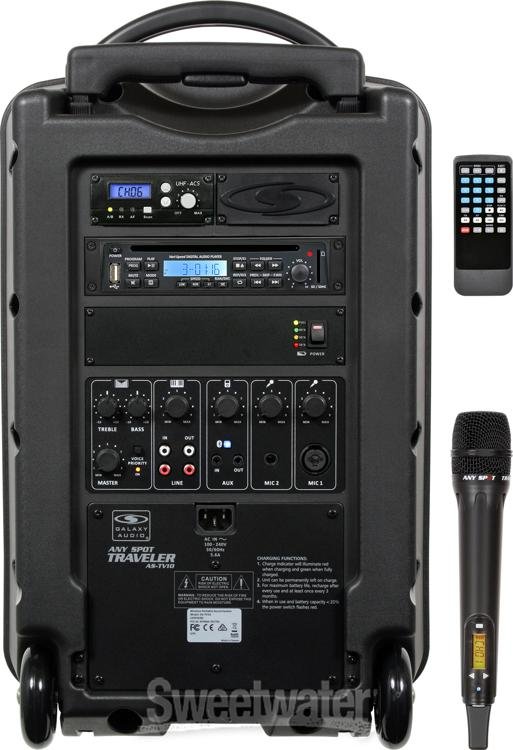 Poolside, at the local convention center, or inside your house of worship — no matter where the need for mobile sound strikes, Sweetwater sound technicians regularly cite Galaxy Audio's TV10 portable speaker as an apt audio solution. The speaker's 150-watt operation supplies plenty of punch for its 10-inch woofer and 1-inch tweeter driver system, ensuring clear, consistent audio with an ample low-end response and top-end detail. Plus, the TV10 comes with an included wireless receiver and handheld wireless mic, all-in-one PA setup right out of the box — not to mention a handy CD player for incorporating your favorite physical media into the mix. Have an existing setup? There's no need to worry about integrating the TV10 thanks to its four input channels, including an XLR combo input, a 1/4-inch input, onboard Bluetooth, and an RCA line input. Finally, once you've connected your audio, achieving crystal-clear sonics is as easy as utilizing the speaker's built-in per-input volume control and 2-band EQ to solidify your sound to suit your specific environment. Highly mobile and sonically strong, when portable audio is in question, a TV10 PA speaker is your answer.