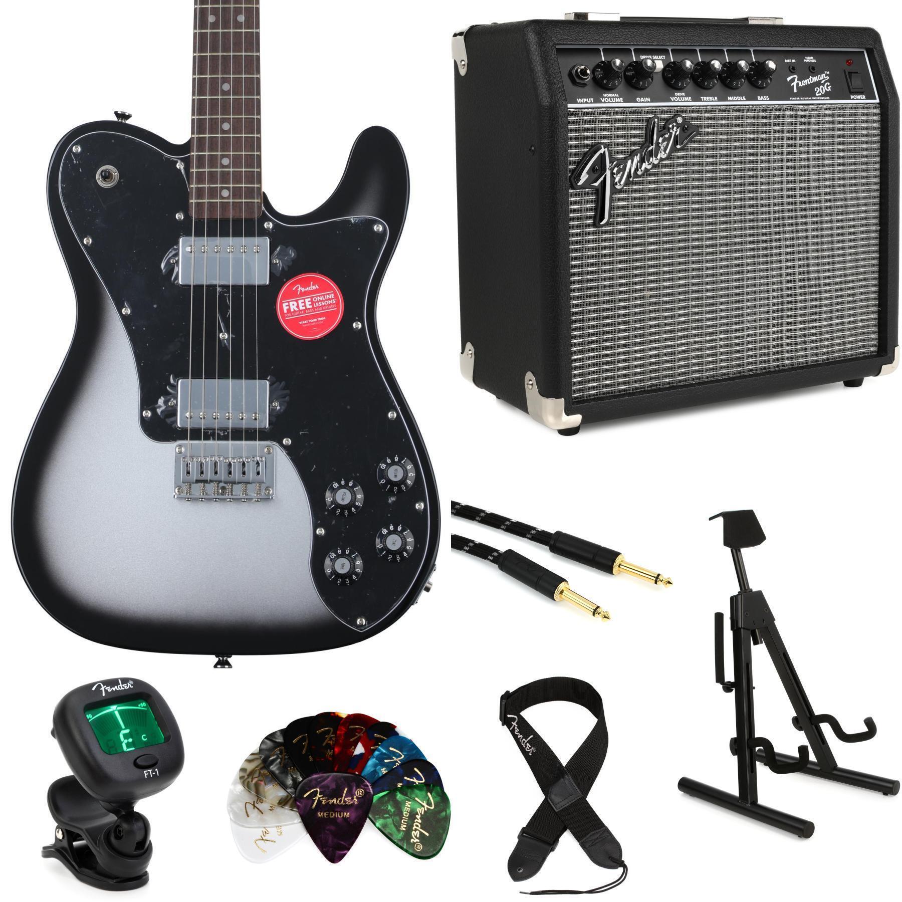 The Squier Affinity Series Telecaster Deluxe combines authentic Tele feel with full-throttle tone and stage-ready presentation, placed directly into your hands at an outstanding price point. Featuring a lightweight, resonant poplar body with a solid C shape, bolt-on maple neck, this Tele offers endless hours of comfort and playability on stage, in the studio, or in the garage as you explore your style across genres. A versatile pair of ceramic humbuckers covers a wide range of tones, with pairs of volume and tone knobs to perfectly dial in genre-spanning sounds. Grab the Squier Affinity Tele Deluxe and hear, feel, and see what countless players over the years have fallen in love with! And remember: this Affinity Tele's amazing silver burst finish is available only at Sweetwater!