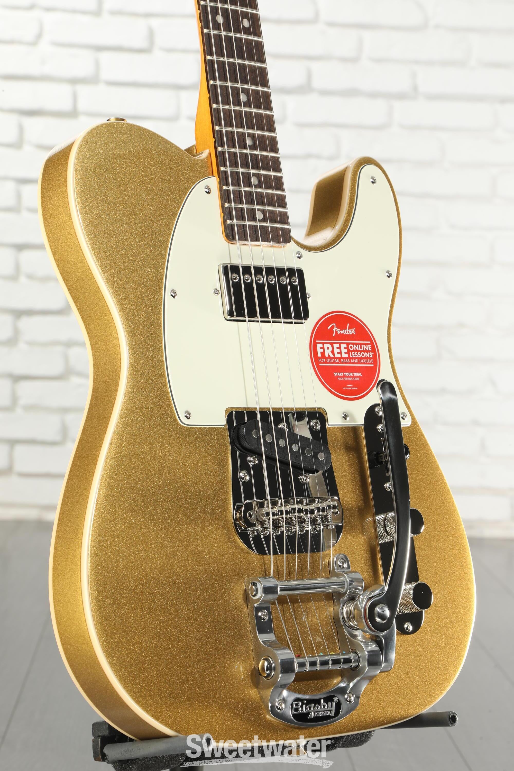 This Squire Classic Vibe '60s S/H Tele with Bigsby is Fun to Play. The Bigsby allows you to get that classic Vibrato sound for many styles of playing like Rockabilly, etc.. Most Bigsbys are notorious for going out of tune, but this one stays in tune quite well due to its Mustang type Saddles (which act like a sort of a "roller" bridge). That being said, note that a Bigsby is NOT a Whammy bar capable of Deep Dives, so go easy on the arm. Although the Fingerboard is not rosewood, the Laurel wood is pretty close in feel and looks. The Bridge has a Single Coil Alnico PickUp that can produce that classic Tele Twang. The Neck PU offers an Alnico Humbucker tone. Some say both PUs sound a bit too bright, but I adjust the Tone controls to reduce the brightness. And did I mention that it also LOOKS very Cool? The Double trim gives it a 60s vintage look. I have the Aztec Gold option, but the Blue one looks Cool, too! A special shout out "THANKS!" goes to Zack McCord (who always goes above and beyond to help) together with Nick P. and some of the Tech folks who searched through a batch of these to find me one UNDER 8lbs in weight (yeah..I'm a wimp!:) I felt bad because they weighed around 6 guitars until they found a lighter one to my liking, but then had to post the other 6 heavier guitars at once. I felt guilty until ALL of those other guitars sold quickly like Golden Hot Cakes! If you are looking for a Cool and Fun guitar to play, take a chance on this special edition. Don't let the "Squire" name deter you. It can compete with a lot of Teles with the Fender logo on the Headstock, and at a very reasonable price.