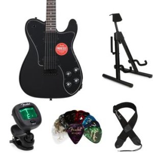 The Squier Affinity Series Telecaster Deluxe combines authentic Tele feel with full-throttle tone and stage-ready presentation, placed directly into your hands at an outstanding price point. Featuring a lightweight, resonant poplar body with a solid C shape, bolt-on maple neck, this Tele offers endless hours of comfort and playability on stage, in the studio, or in the garage as you explore your style across genres. A versatile pair of ceramic humbuckers covers a wide range of tones, with pairs of volume and tone knobs to perfectly dial in genre-spanning sounds. Grab the Squier Affinity Tele Deluxe and hear, feel, and see what countless players over the years have fallen in love with! And remember: this Affinity Tele's amazing silver burst finish is available only at Sweetwater!