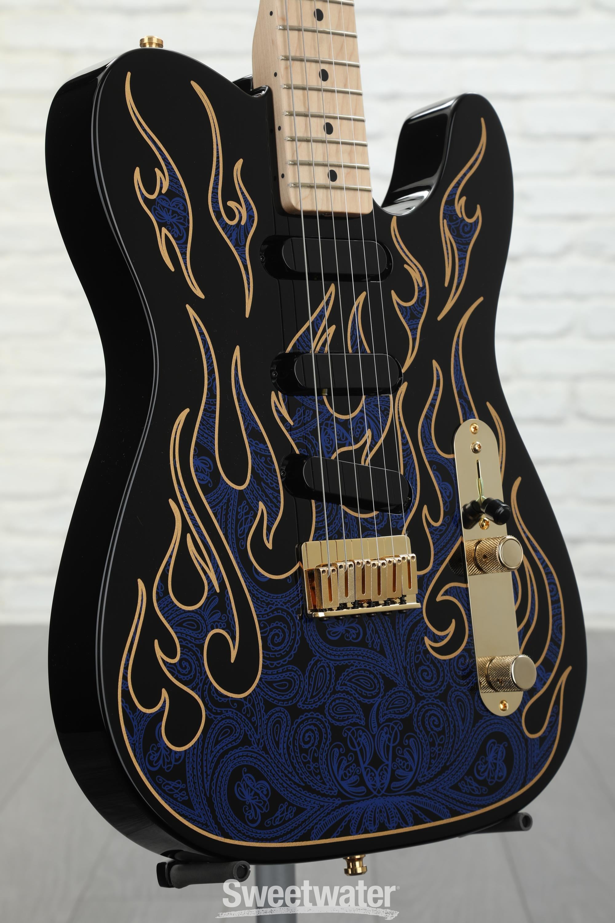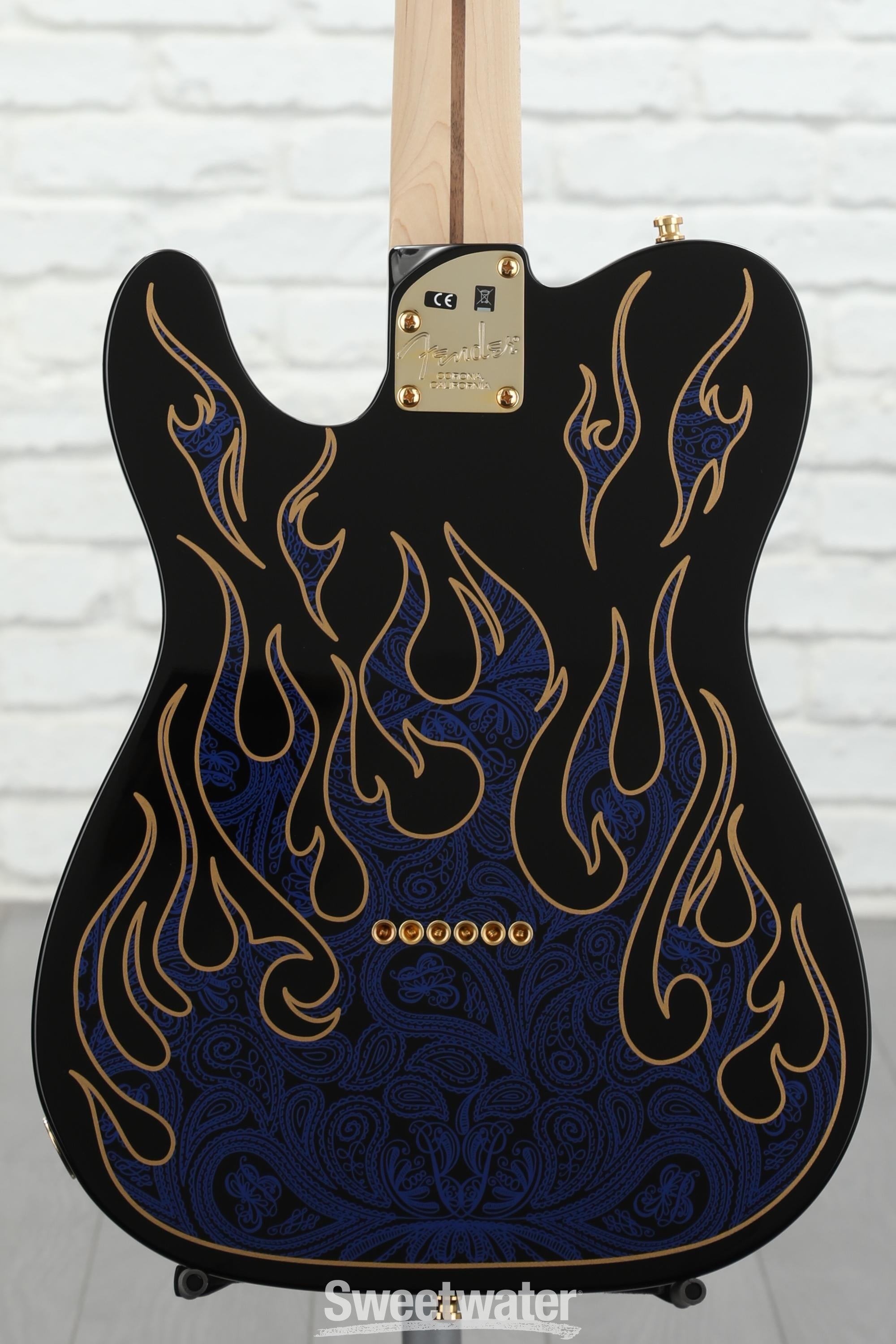 From serving as Elvis’ sideman for the better part of a decade to shredding up the studio with a 6-string southern twang, James Burton’s influence on the development of rock and country guitar is simply incalculable. The Fender James Burton Telecaster harnesses his half-century-plus of guitar mastery, resulting in an instrument with exceptional playability and unmatched tonal versatility. This guitar starts with an ultra-light basswood body, loaded with a trio of Specially Designed James Burton single-coil pickups, 5-way switching, and an S-1 series switch to provide a sweeping array of tones befitting a studio maestro like James. Next, the maple-on-maple neck’s vintage-style frets and modern 9.5-inch radius combine the best specs of old and new for a slick, speedy feel perfect for high-speed chicken pickin’ finesse. Finally, the James Burton is finished with a sleek Paisley Flame finish — a nod to James’ iconic Paisley Tele that he often played onstage with Elvis during his Las Vegas period.
