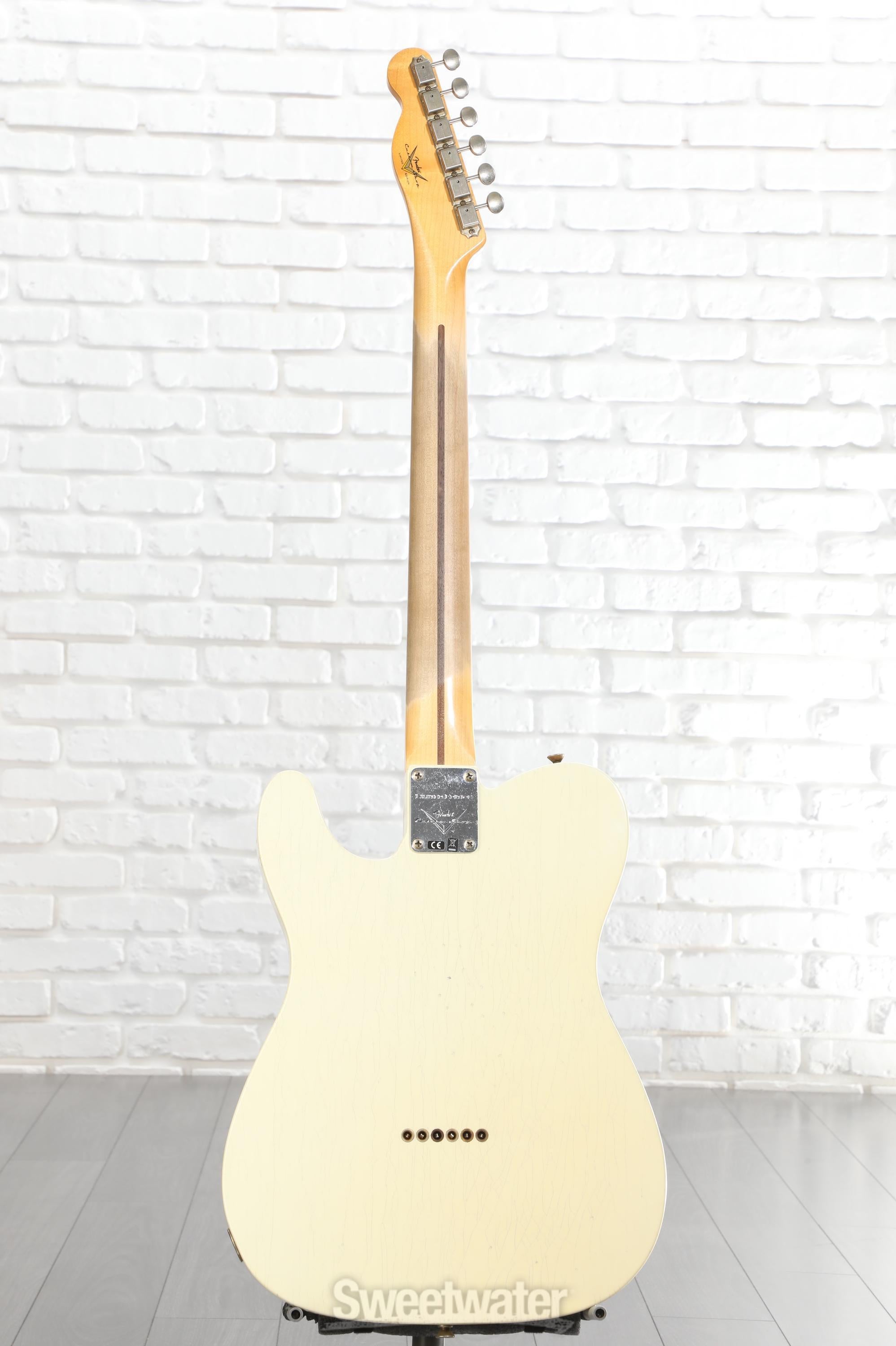In order to bring this Tele’s versatile, bright character to life, Fender loaded it with the Custom Shop’s Hand-wound Tomatillo Tele pickups. Intentionally underwound and rocking Alnico 2 magnets, these single-coils produce some sweet, enriched tones. Under the single-ply parchment hood, ’51 Modified Nocaster wiring, replacing the master tone control with a blender pot. Use this in conjunction with the 3-way switch to dial in your sound through a variety of configurations. Should you so choose, this Tele ships with a Fat ‘50s control assembly as well, letting you choose how to make the best use of this stage-weathered axe.
