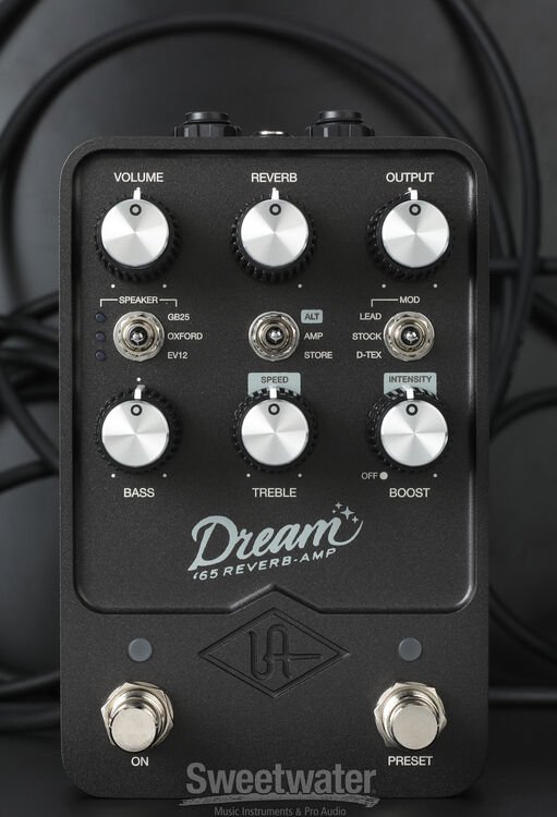 Big cleans, deep vibrato, springy reverb — sound familiar? Universal Audio’s Dream ’65 Reverb Amp pedal is an authentic start-to-finish emulation of perhaps the most recorded 1 x 12-inch combo amp of all time. This pedal gives you everything an original model would and more, boasting three speaker options and three amp versions — stock and two common modifications — that perfectly capture the sparkling cleans and rich overdrive of this pedal’s inspiration. Guitarists at Sweetwater are amazed at how closely the Dream ’65 re-creates the sound of a tube amp recorded in a live room, and this lifelike quality comes courtesy of UA’s incredible mic, cab, and Dynamic Room Modeling technology. What's more, each pedal in the UAFX series allows you to bypass your amplifier's preamp when the pedal is engaged via the special "4-cable" mode, supercharging your amp with two additional channels. Are you looking for even greater control? The Dream ’65 sports Bluetooth and MIDI compatibility to connect to Universal Audio’s UAFX app for enhanced editing, expanded control, access to artist presets, and more!