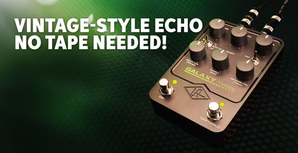 The Universal Audio Galaxy ’74 Tape Echo & Reverb pedal is an expertly crafted emulation of a lauded ‘70s-era Japanese tape reverb/delay unit, with an all-encompassing slew of upgrades that arguably make it an upgrade over the vintage original. Every nuance of the original’s wow, flutter, and gritty preamp are perfectly replicated, offering full modeling of the multi-head tape delay mechanism, tap tempo, and twice the repeat time. This results in an exceptionally warm, rich analog repeat with rhythmic possibilities that were simply impossible on the original unit. And while the ’74 Tape Echo sports a robust control section to dial in your sound, a quick flip of the Alt switch unlocks secondary functions on the bottom three knobs to further tweak your tone. Finally, pairing your Galaxy ’74 with the UAFX Control app allows you to swap the footswitch functions between Effects/Performance mode and Delay/Reverb mode, unlocking everything from feedback swells to echo rate ramps to bog-standard bypass options, with MIDI compatibility to expand your control even further.