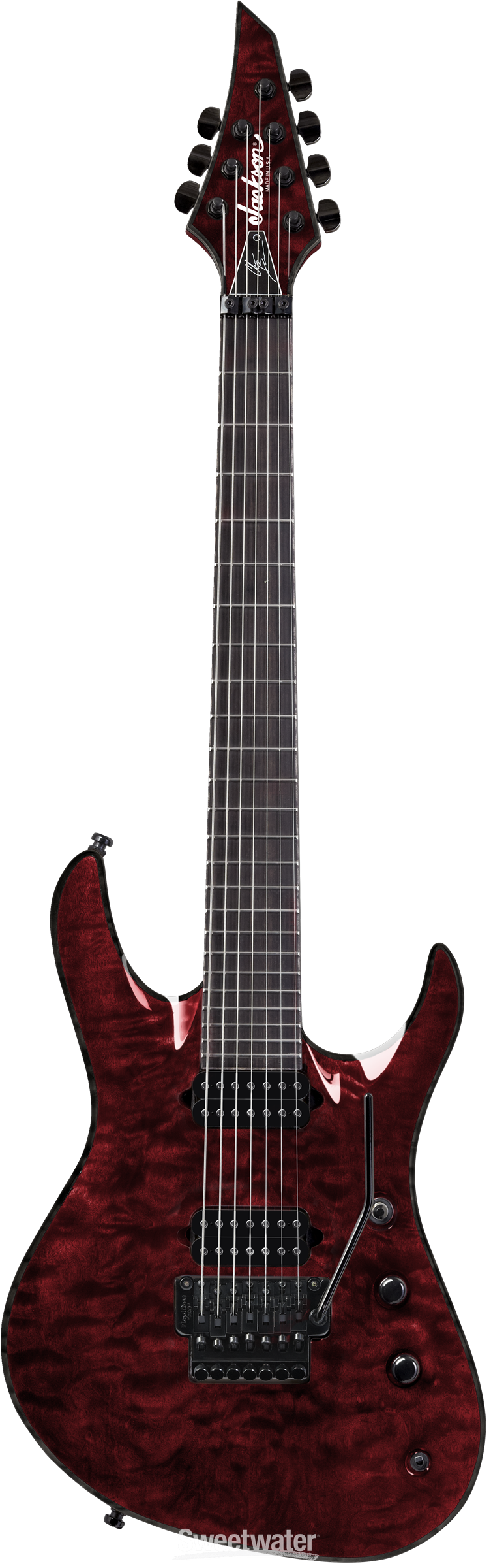 Now at the helm of Swedish death-metal maestros In Flames, Chris Broderick’s illustrious history of axe-wielding wonder includes Jag Panzer, Nevermore, Act of Defiance, and, of course, Megadeth — in other words, his prismatic brace of performance prowess has no shortage of distinct sonic-sculpting needs. The Jackson USA Signature Chris Broderick Soloist 7 marries Chris’s musical madness with the unrivaled craftsmanship of the Jackson Custom Shop’s legendary luthier, Mike Shannon, to create a unique master-built Soloist with maximum tonal tenacity. Chris designed this signature Soloist with an offset archtop mahogany body and an attention-commanding quilt maple top with a neck-through-body construction of graphite-reinforced, quarter-sawn maple, for the ultimate intersection of strength, durability, weight reduction, and sustain. Even the custom DiMarzio humbucking pickups were designed with Chris’s input to suit his insatiable tone, enamoring Sweetwater’s Guitar Shop with the voltaic versatility of the Soloist 7’s suite of coil-splitting and tone-killing capabilities. Handbuilt in Jackson’s West Coast–based Custom Shop, the USA Signature Chris Broderick Soloist 7 is ready to rip, rain or shine.