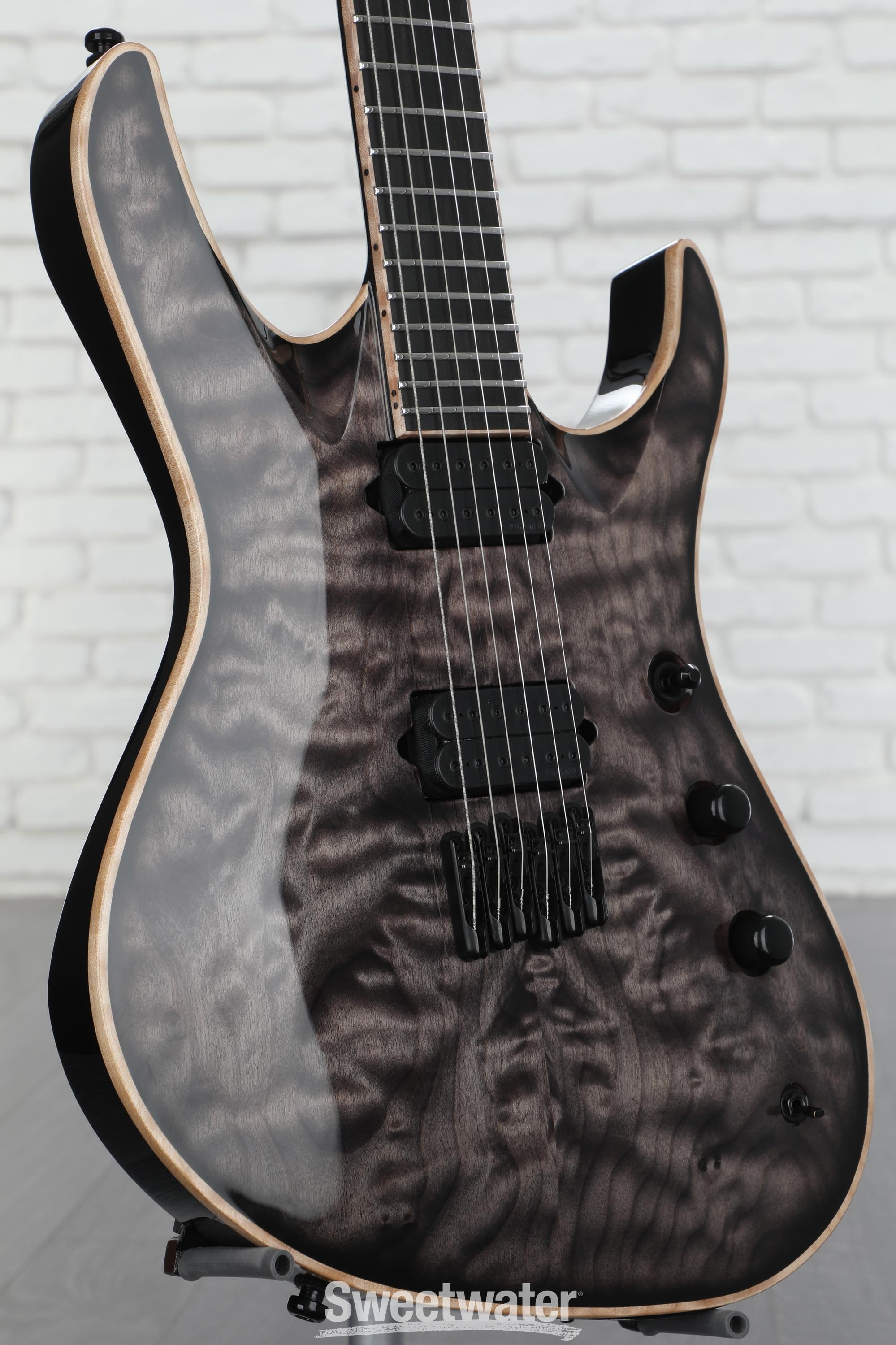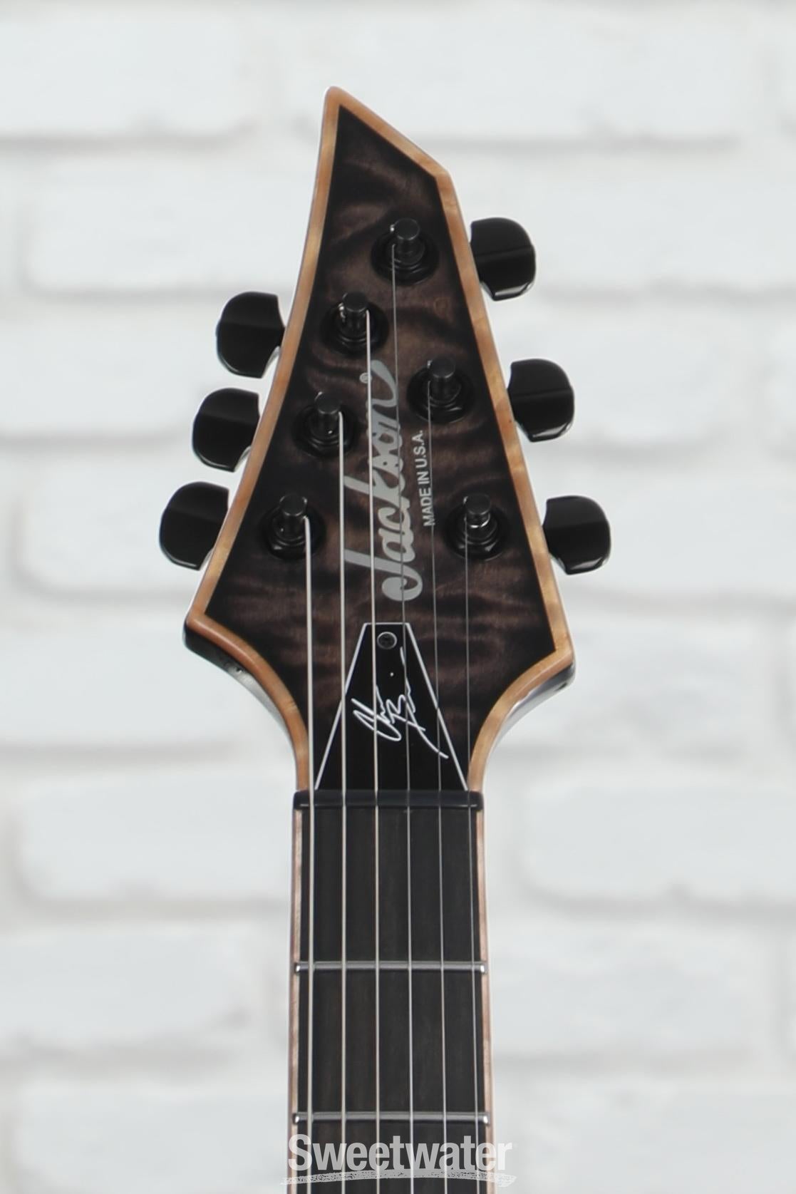 Designed in collaboration with Jackson Custom Shop Master Builder Mike Shannon, the Jackson USA Signature Chris Broderick Soloist HT6 was conceived as a premium take on one of the company’s most classic — and eminently venerable — models. This axe was built for maximum performance, melding an ergonomic offset mahogany body with an exquisite arched maple top and rock-solid neck-through-body construction. This solidbody electric guitar brandishes a comfortable graphite-reinforced, quarter-sawn maple neck, which is capped by a fast-playing, 12-inch-radius ebony fingerboard with 24 jumbo stainless steel frets. The Chris Broderick Soloist delivers a smorgasbord of head-crushing tones courtesy of a set of direct-mount, custom-designed DiMarzio humbuckers, which are bolstered by a mini-toggle kill switch, a push-pull coil split, and a push-pull tone kill. You also get a single-string hardtail bridge that isolates each string for maximum focus, Planet Waves Auto-Trim locking tuners, and Ernie Ball strap locks. Furthermore, the Chris Broderick Soloist was tailor-made for the spotlight, thanks to a light-catching gloss polyester finish and stunning masked-off quilt maple binding. The Signature Chris Broderick Soloist HT6 is one of the finest made-for-metal instruments in Jackson’s USA lineup, and given the company’s penchant for top-shelf metal-ready axes, that’s really saying something!