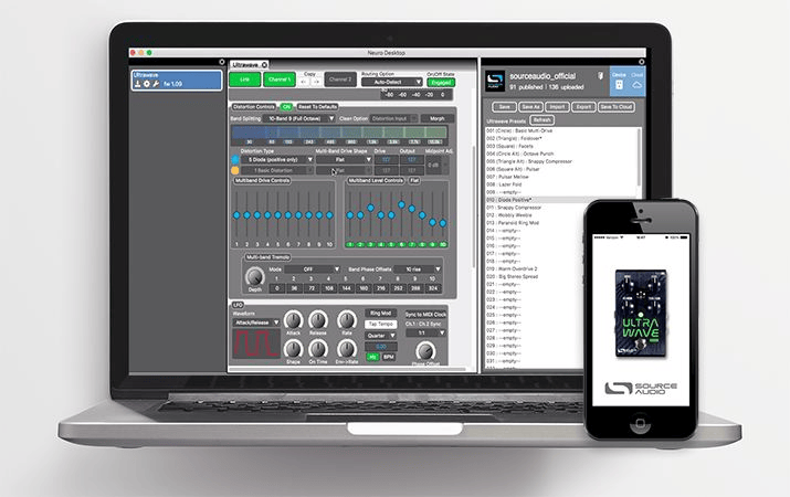 Obviously, a pedal as sophisticated as the Source Audio Ultrawave Bass can be a little daunting for players to dive right into. Fortunately, a wealth of artist presets can be accessed within the free Source Audio Neuro Editor desktop software and mobile app. Whether you're looking for a special tone to make a bass part pop or you just want an entry point to building the tone of your dreams, the Neuro Editor is the place to start working your way into all Ultrawave Bass can accomplish. Neuro Editor also makes a one-stop shop for the sonic fruits of your tonal labors — you can catalog favorites and user presets for later recall.