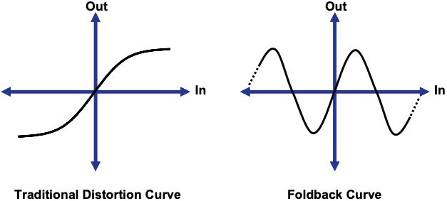 - Foldback distortion: This synth-derived distortion type is a callback to Source Audio's Soundblox Multiwave pedal. Fans describe its sound as aggressive, glitchy, squelchy, and over-the-top buzzy — in short, it knows how to make an entrance.