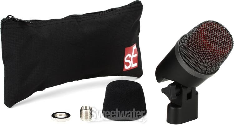 Designed for use with kick drums, floor toms, or other large drums where low-frequency energy is critical and SPLs are high, the sE Electronics V Kick is the most compact and versatile bass drum microphone in its class. The V Kick's integrated swivel joint allows flexibility of placement, and its purpose-built DMC7 SP capsule delivers a sonic character specifically tailored for bass drums. This custom-tuned capsule, combined with a durable aluminum housing and an internal shock mount has studio and live sound engineers here at Sweetwater putting the V Kick in rotation for jazz kits, metal kits, and everything in between. Further shaping of the sound is facilitated by two switches on the rear the microphone — letting you swap between Classic and Modern voicing options for the entire microphone or for just the high frequency shelf. From Classic punch to Modern edge, the sE Electronics V Kick delivers the ultimate kick drum sound