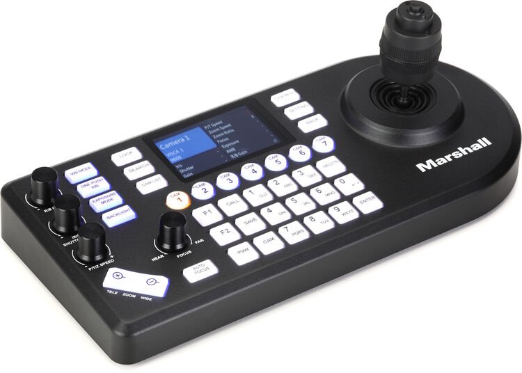 Whether you’re in the midst of creating content or managing cross-protocol camera feeds for a live event, the VS-PTC-300 PTZ NDI camera controller from Marshall Electronics is a must-have companion for seamless productions every time. Equipped with a large PTZ joystick, ergonomic zoom rocker, full-color display screen, and an onslaught of image fine-tuning features, the VS-PTC-300 makes it possible to personalize every feed with the utmost precision. Setup as many as seven cameras over RS232, 14 over RS422, and 255 over IP, with convenient IP/NDI camera discovery across the network for quick recall to streamline your workflow. This controller also accommodates VISCA, PELCO D/P, ONVIF, and VISCA over IP protocols. Additionally, the VS-PTC-300 is a breeze to control with just one hand, providing users with full comprehensive command over exposure, focus, shutter speed, iris, compensation, white balance, PTZ speed, and more. Sweetwater A/V experts are in agreement: the benefits of a capable and user-friendly PTZ workstation like the VS-PTC-300 are absolutely invaluable for your production space!