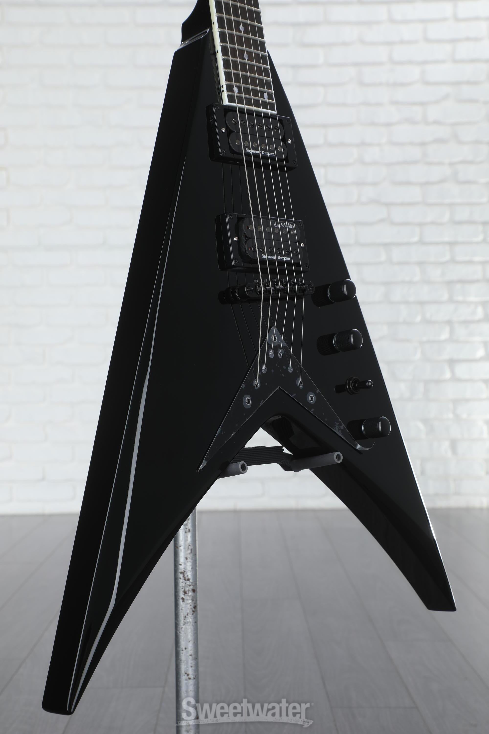 This guitar is basically everything I could want in a flying V, minus neck-thru construction, but that doesn't matter! This thing is a monster for the price it's at right now. Pickups sound fantastic, neck is comfortable and doesn't hinder movement at all, stays very well in tune, and looks so rad. This guitar is such a joy to play, you won't regret buying it.