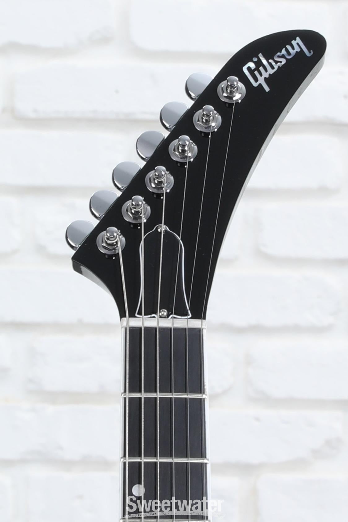 Like its aural ancestor, the revamped Victory is endowed with a voltaic mix of sonic contouring tools, upgraded and enhanced with contemporary electronics tailored to support out-of-time sound — equal parts ’80s exploration and modern malleability. Dual Gibson ’80s Tribute humbuckers bring the nitro-finished axe’s tonewood dyad to life, methodically voiced to push passive pliability to the brink of high-octane output without compromising clarity or definition, from clean tones and cowboy chords to lightning leads and smoldering solos. What’s more, the Victory takes up the gauntlet of its precursory powerhouse via meticulous sound-design controls, with the Master Volume and Master Tone knobs supporting detailed coil-splitting and choosing between inner and outer coils. Coupled with the 3-way pickup selector, an unbridled array of humbucking and single-coil configurations make victory all but assured.