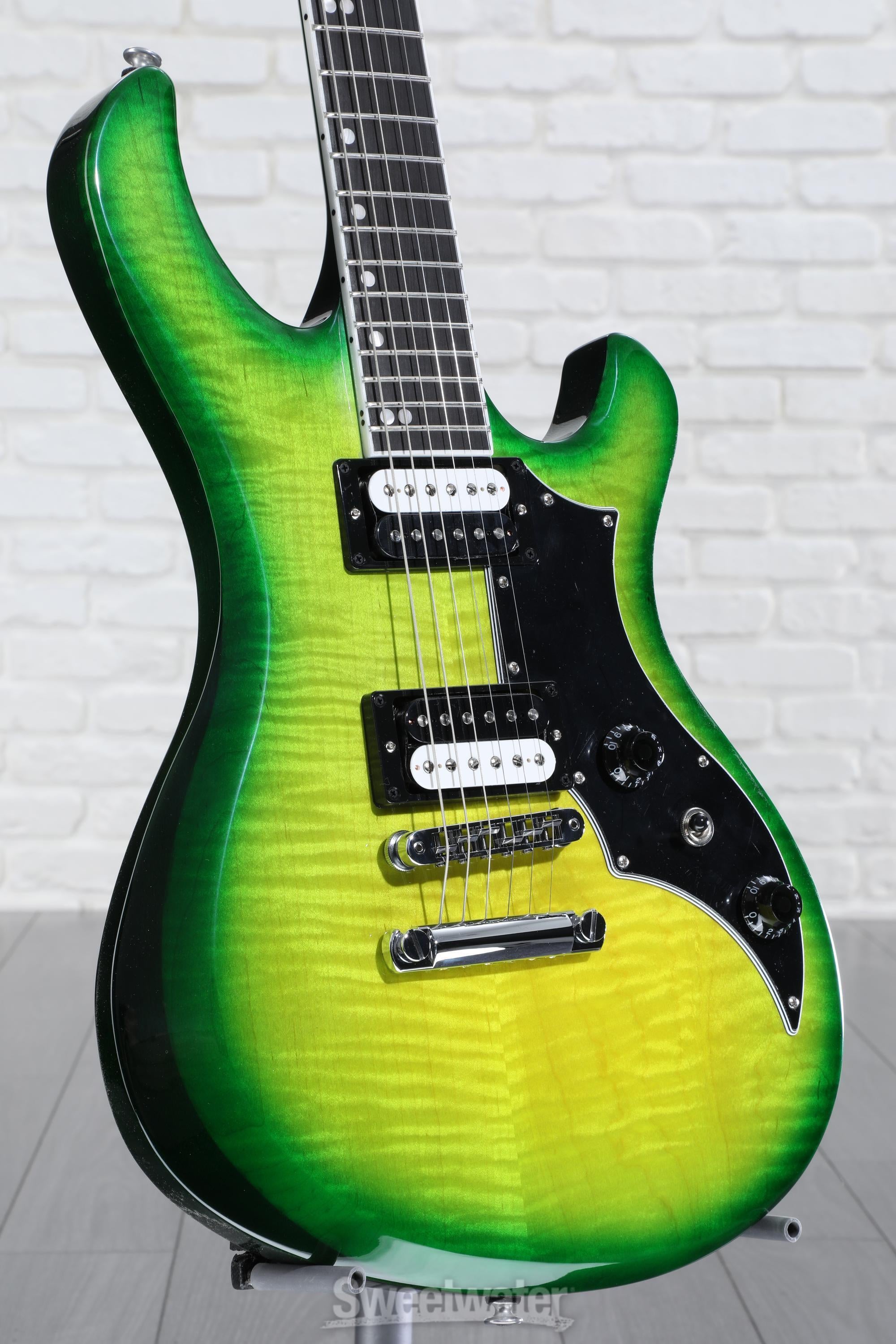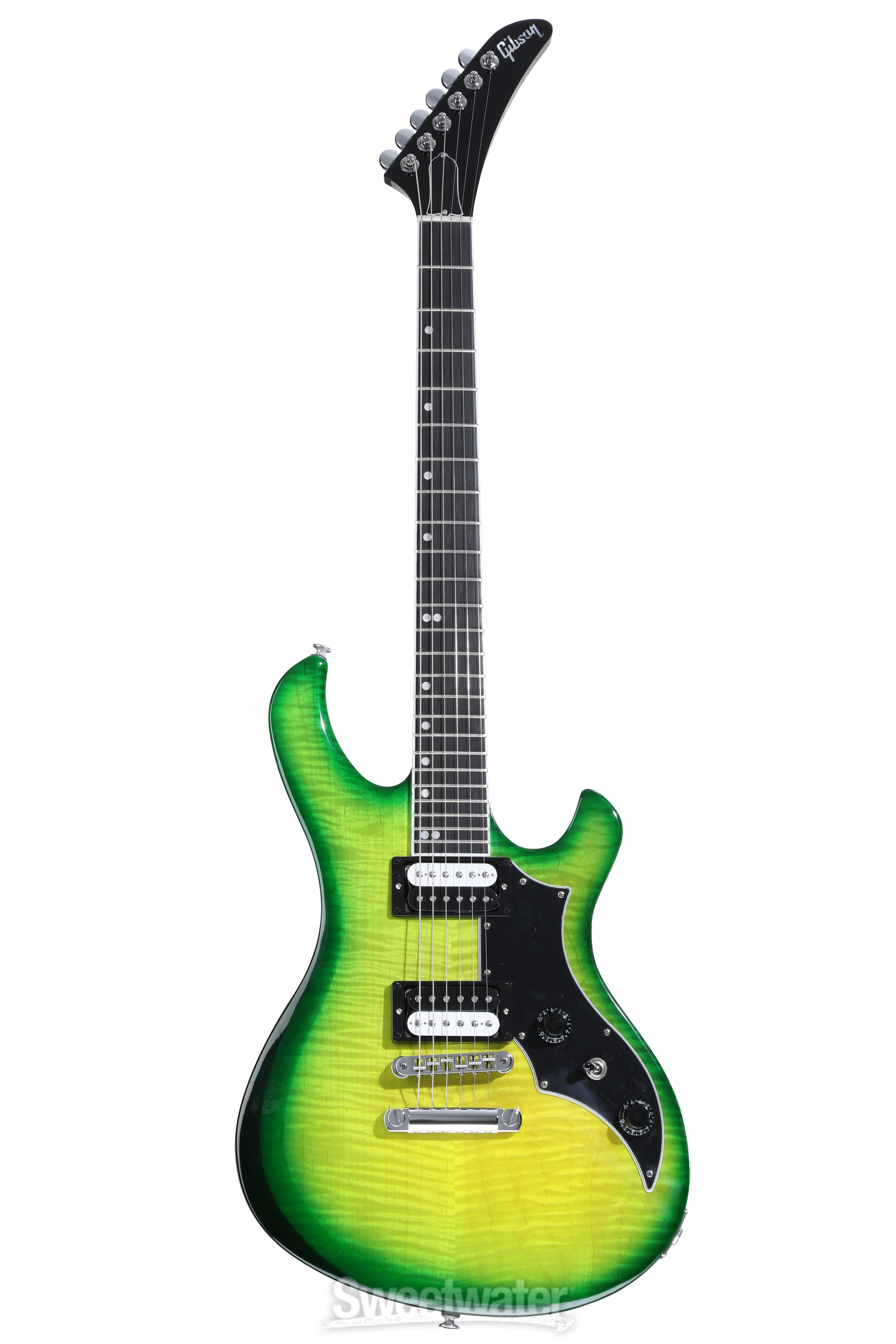 Gibson’s dark horse rides again, boldly reimagined to deliver its hallmark sound-design tools to the modern gold-winning guitarist. Rise, sweet Victory — the elusive ’80s axe is back! Thanks to the increasing demand for secondhand models on the used market, Gibson saw an opportunity to not only give their players what they want, but also revisit the ingenuity that birthed this ahead-of-its-time instrument and remix the components to suit the dynamism and diversity of the contemporary tone-crafting landscape. Much to the delight of Sweetwater’s seasoned studio scholars, this AA-figured-maple-topped riff machine offers the same caliber of sonic sculpting that set its 1980s predecessors a cut above the rest. With 24 frets sprawling a compound-radius fingerboard, a high-speed neck, and a dual-humbucker setup that’s rife with coil configuration capabilities, this reincarnation of the Gibson Victory masterfully merges historic design ethos with next-gen performance possibilities. The winner takes all.