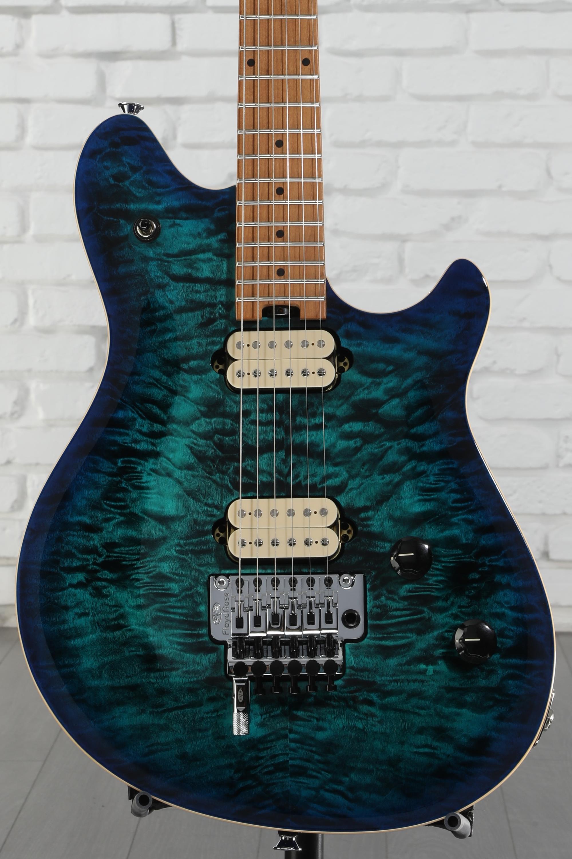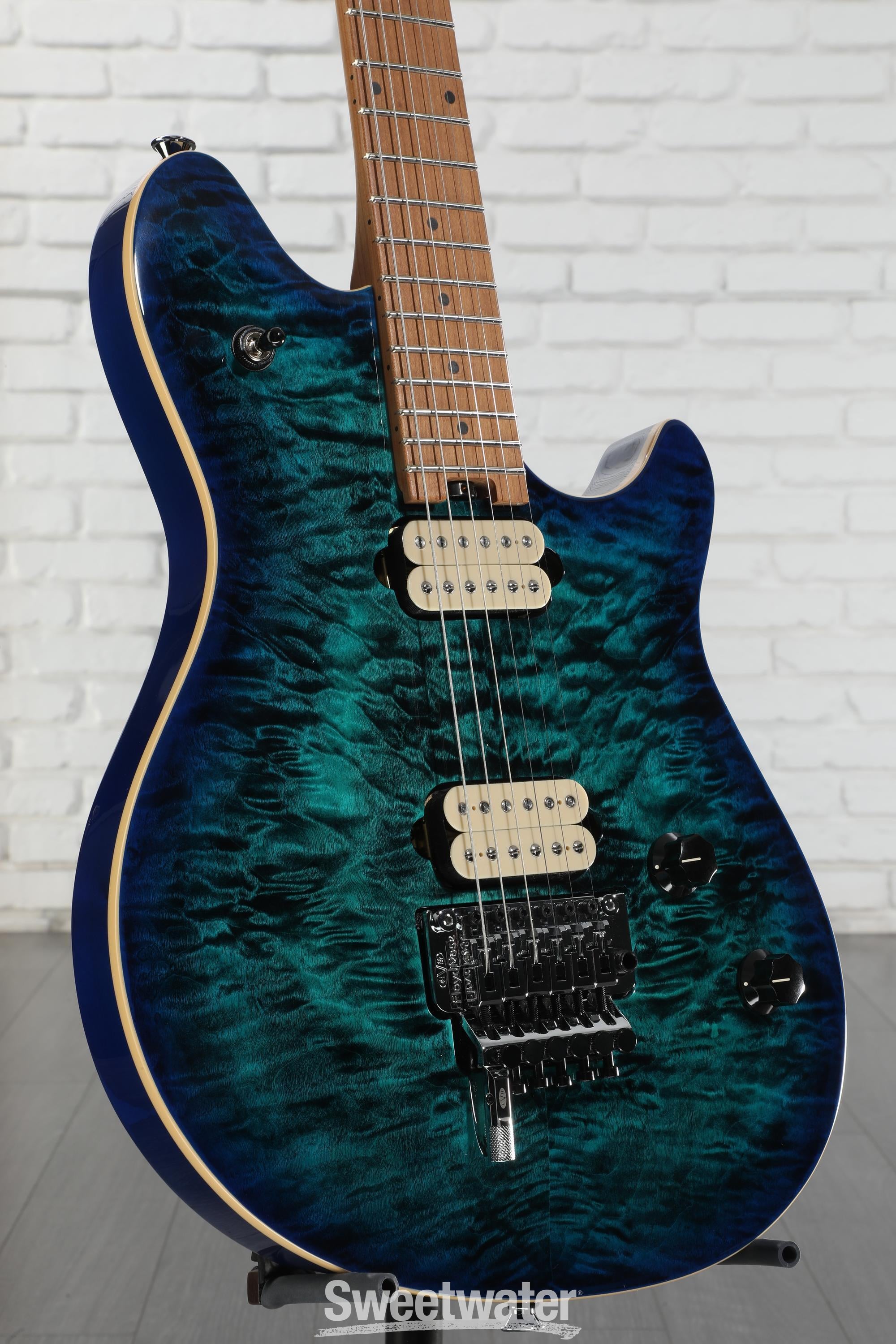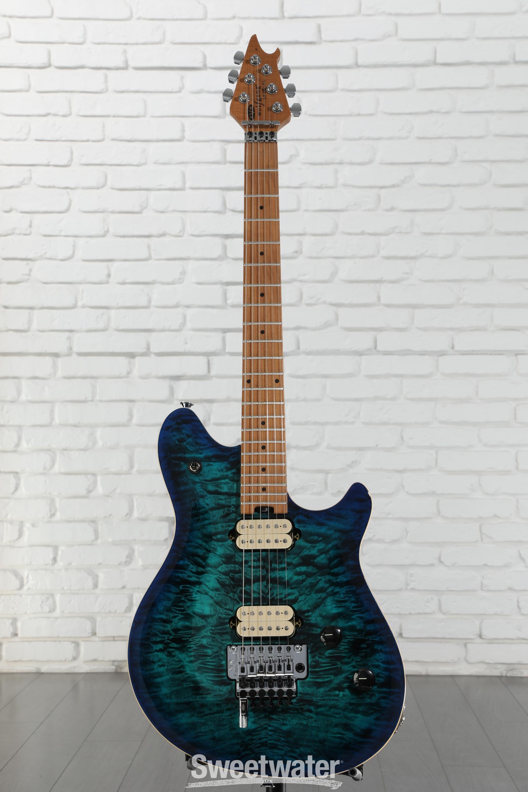 Edward Van Halen’s contributions to the electric guitar are undeniable, and the EVH Wolfgang Special QM Electric Guitar delivers the massive sound and road-tested durability befitting of its legendary namesake. EVH humbuckers in the bridge and neck unleash a blistering yet clear sound, with upgraded volume and tone pots producing smoother swells and clearer tone. The basswood body topped with quilted maple and quartersawn baked maple neck combine for excellent sustain and durability, with a silky baked maple fingerboard ideal for finger-twisting runs and searing leads. Designed to his exact specifications and intentionally positioned against the body, the dive-bomb-only D-Tuna-equipped Floyd Rose lets you mimic Eddie’s signature trem work with ease, along with giving you instant access to Drop D tuning. The EVH Wolfgang Special QM is on fire — pick one up and unleash your creativity while channeling the spirit of a true rock icon.