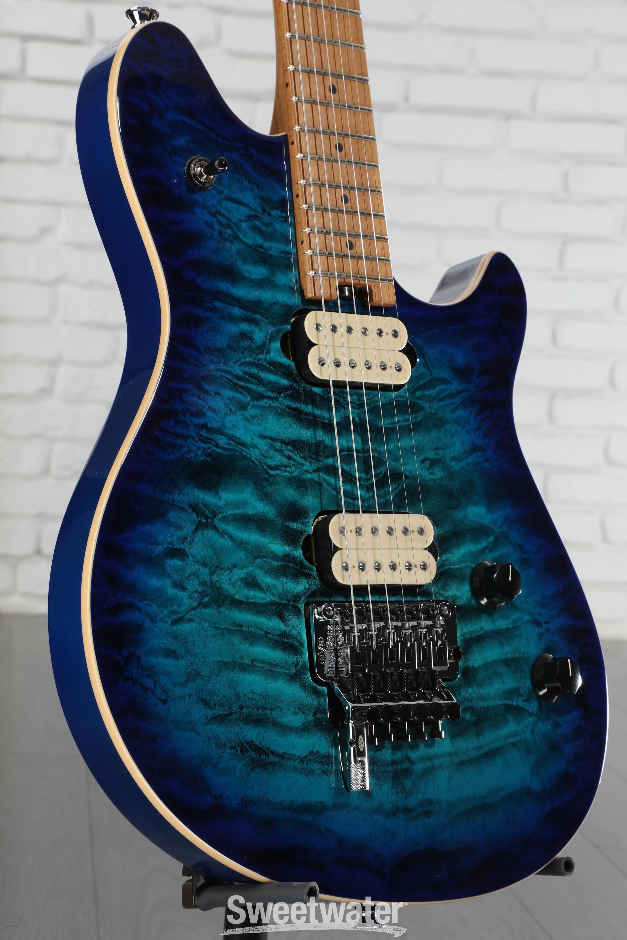 Edward Van Halen’s contributions to the electric guitar are undeniable, and the EVH Wolfgang Special QM Electric Guitar delivers the massive sound and road-tested durability befitting of its legendary namesake. EVH humbuckers in the bridge and neck unleash a blistering yet clear sound, with upgraded volume and tone pots producing smoother swells and clearer tone. The basswood body topped with quilted maple and quartersawn baked maple neck combine for excellent sustain and durability, with a silky baked maple fingerboard ideal for finger-twisting runs and searing leads. Designed to his exact specifications and intentionally positioned against the body, the dive-bomb-only D-Tuna-equipped Floyd Rose lets you mimic Eddie’s signature trem work with ease, along with giving you instant access to Drop D tuning. The EVH Wolfgang Special QM is on fire — pick one up and unleash your creativity while channeling the spirit of a true rock icon.