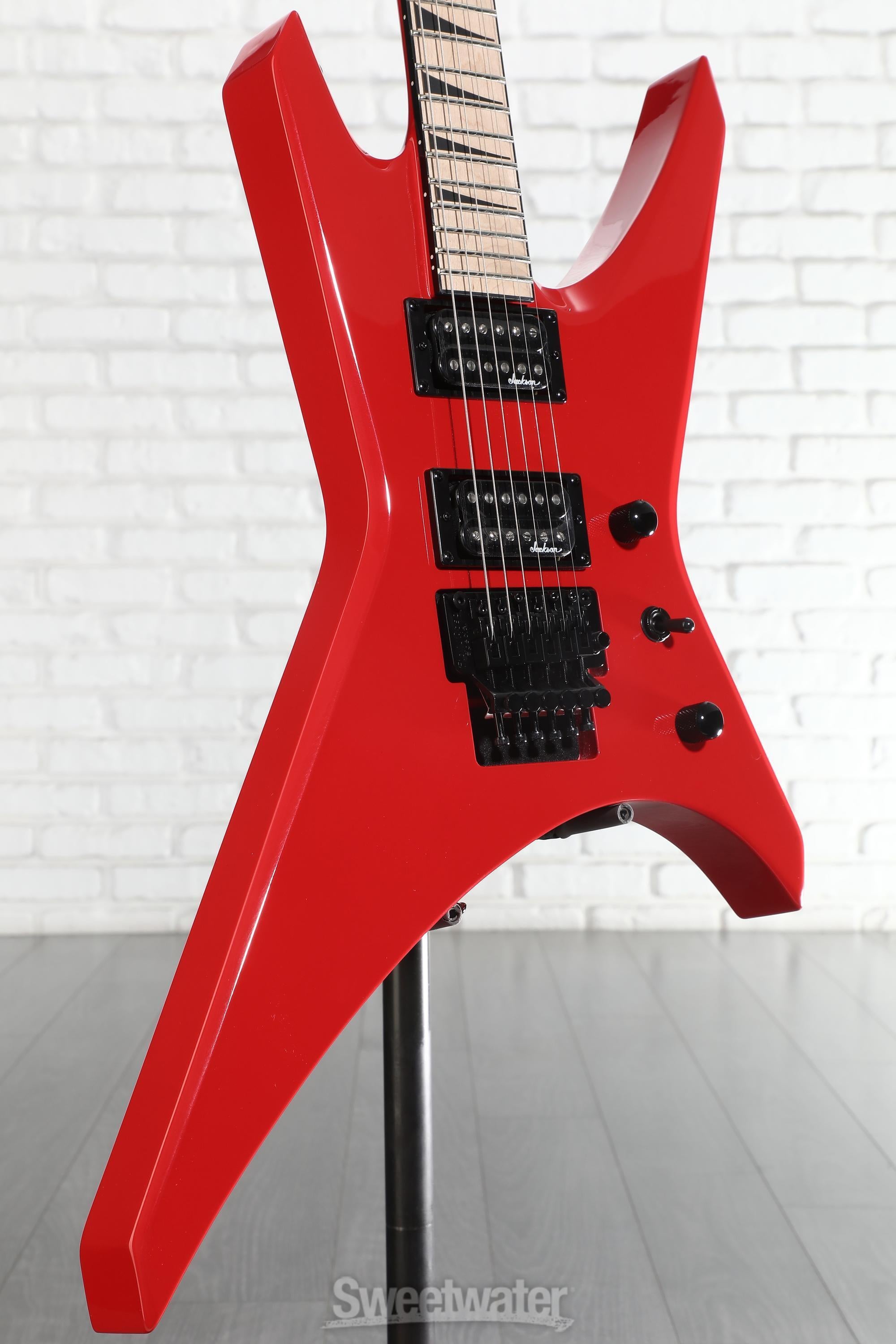 With its sharp looks and even sharper tone, Jackson's X Series Warrior WRX24M electric guitar is a welcome fit in any shredder's arsenal. Its solid poplar body lays a balanced tonal foundation for a pair of Jackson-designed high-output pickups, perfect for hot and heavy genres demanding searing licks in complete clarity. Wrap your hands around the smooth and snappy maple neck, and you'll quickly discover the benefits of this instrument's neck-through construction — Sweetwater's furious fretters commonly cite neck-through guitars as a must-have when needing unencumbered access to the highest frets for solos, sweep-picked passages, and more. A 12–16-inch compound radius maple fingerboard ensures comfortable fretting in all positions, with striking black sharkfin inlays adding a nice visual bite. Expressive playing is a cinch with a Floyd Rose tremolo on hand, facilitating everything from subtle warbles to insane squeals and everything in between. Conjure metallic mayhem in style with the Jackson X Series Warrior WRX24M!