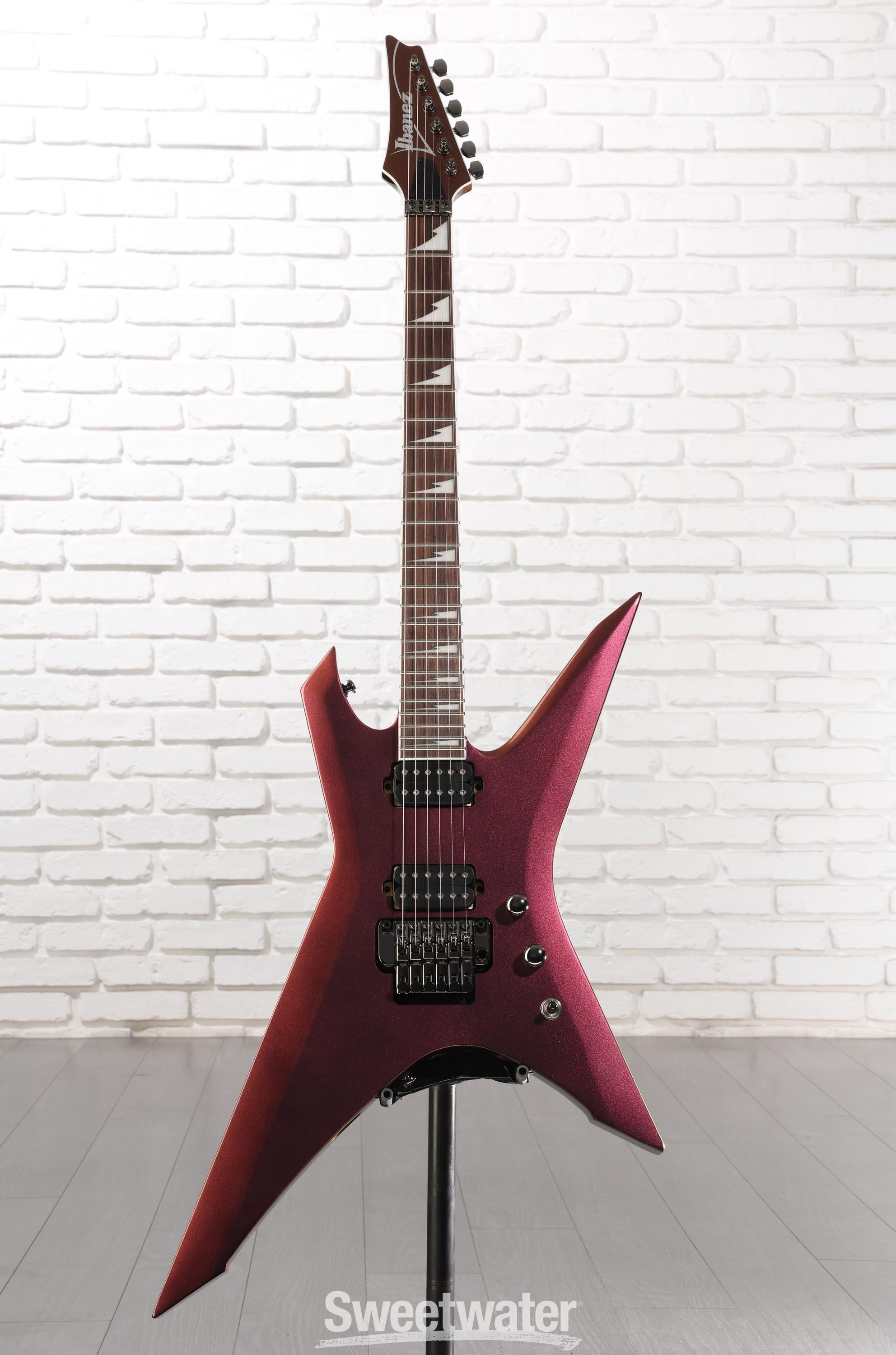 Fusing high-performance playability with Axstar-esque visuals, the Ibanez Xiphos XPT420DX boasts a radically angular, X-shape okoume body, which is bolstered by robust neck-through construction, putting rock-solid stability and truckloads of natural sustain right at your fingertips. Furthermore, the 5-piece maple/walnut neck showcases the sleek Wizard III profile, reinforced by a flat-radius rosewood fingerboard with 24 jumbo-sized frets, giving you ample room for rapid-fire finger maneuvers. Plugging in the XPT420DX unleashes a captivating continuum of tones, courtesy of a twin complement of Ibanez’s Quantum humbuckers. Additionally, the Edge-Zero II double-locking tremolo places an entire arsenal of pitch-abusing pyrotechnics at your disposal with steadfast reliability — even under extremely primal playing conditions. Finally, reverse Shark Tooth fingerboard inlays and a spotlight-ready finish put the perfect final touches on this eminently head-turning solidbody electric guitar. Step onto the stage and command attention — with the Xiphos XPT420DX in your hands, every eye will be locked on you.