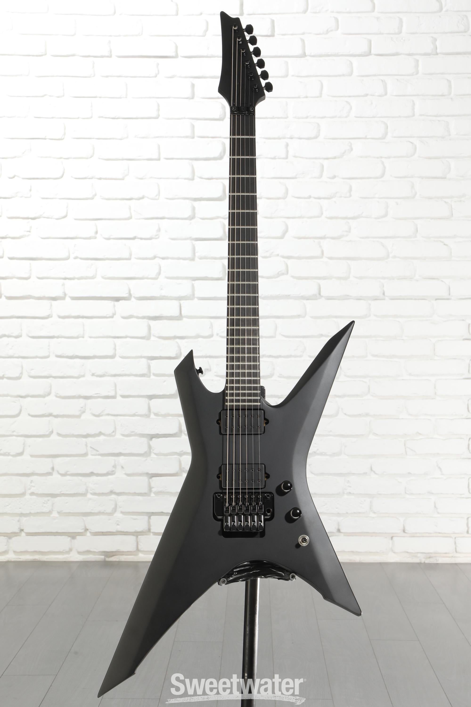 The Ibanez Iron Label Xiphos XPTB620 was crafted for pure unadulterated metal, as evidenced by its radical Xiphos body and sinister blacked-out aesthetics. Boasting an okoume body, this axe is a certified headbanger — okoume is a tonewood renowned for its bright, cutting tone and incredible natural sustain. And that's before you even plug it in! Paired with a suitable high-gain amplifier, the XPTB620 churns out face-melting metallic textures, courtesy of a set of DiMarzio D Activator humbuckers. Meanwhile, its 5-piece Wizard II neck and 24-fret ebony fingerboard provide unfettered access to your most technically demanding riffs. You also get rock-solid, stage-ready hardware, such as Gotoh tuning machine heads and an Edge-Zero II tremolo, which facilitates sociopathic levels of whammy bar abuse without the tuning headaches. If you want to play extreme metal, you need an extreme solidbody electric guitar like the Iron Label Xiphos XPTB620.