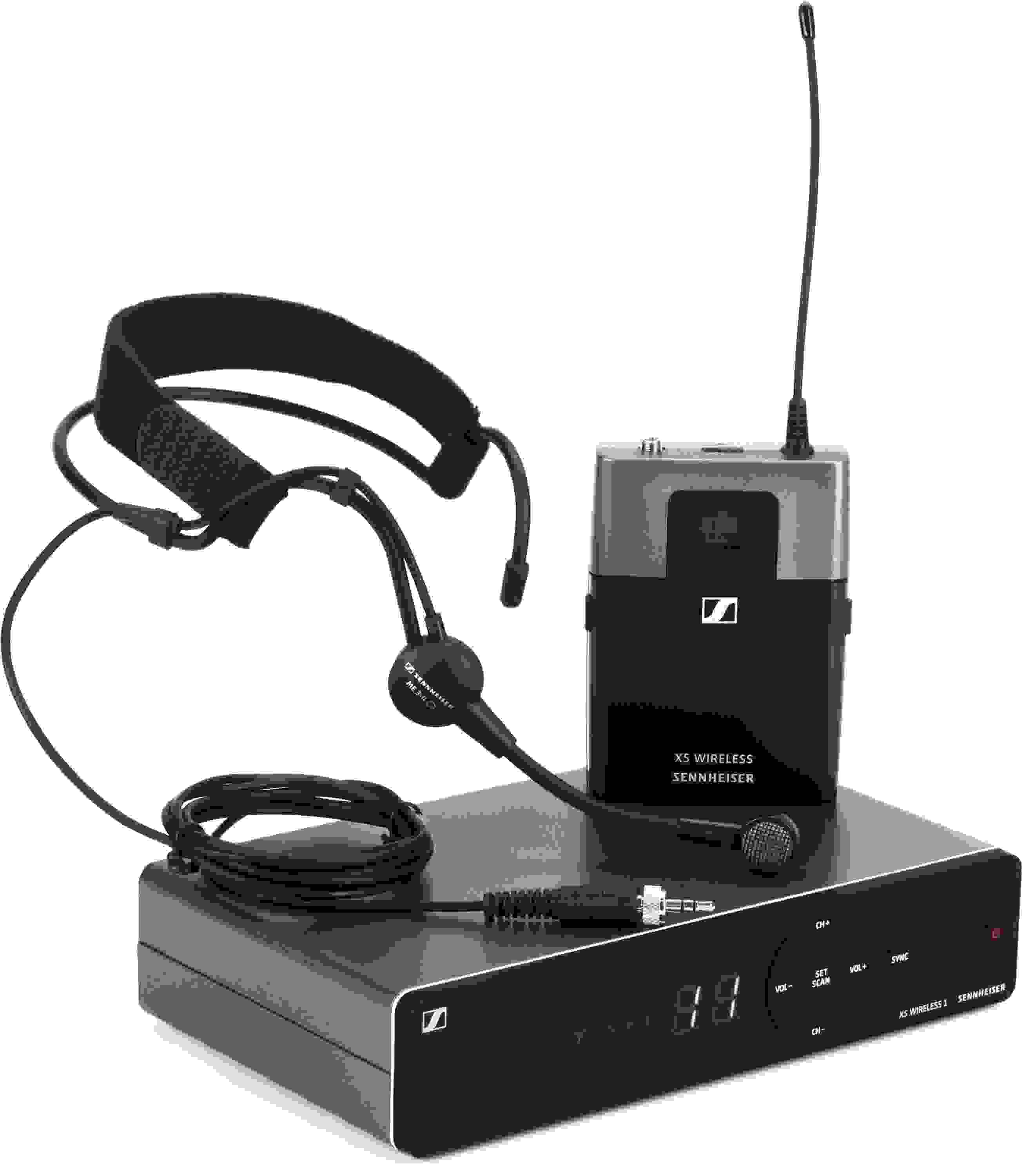 The Sennheiser XSW 1-ME3 wireless headset microphone system bundles great sound and ease of use into a sleek wireless headset system. A bodypack transmitter pairs with an ME 3 headset microphone to produce a sharp, clean sound. Convenient features like one-button scanning and synchronization are housed in a streamlined receiver with built-in antennas. Intuitive icon-based indicators make operation of this headworn microphone system a piece of cake. Use up to 10 systems simultaneously. The Sennheiser XSW 1-ME3 is a great wireless headset microphone system for performers involved in vigorous activities such as sports or dance.