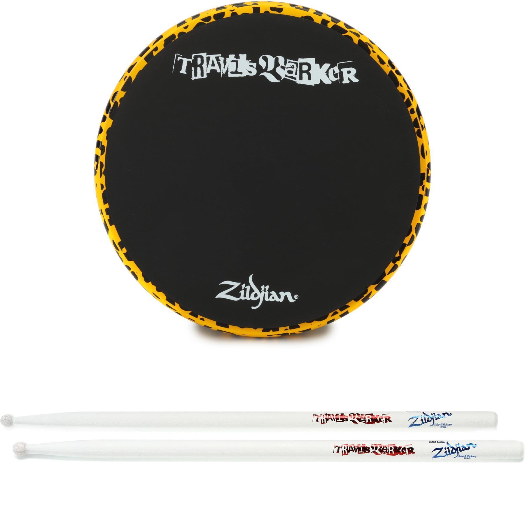 Designed with Travis Barker himself, the Zildjian Travis Barker Practice Pad from Sweetwater sports a dual-sided design that features silicone on one side for articulation and polyurethane foam on the other side for noise reduction. Additionally, a colorful orange powder coated MDF cheetah-print base with rubber backing and Travis's signature logo on the playing surfaces make the Zildjian Travis Barker Practice Pad ideal for drummers searching for a unique-looking practice pad in addition to one that feels great.