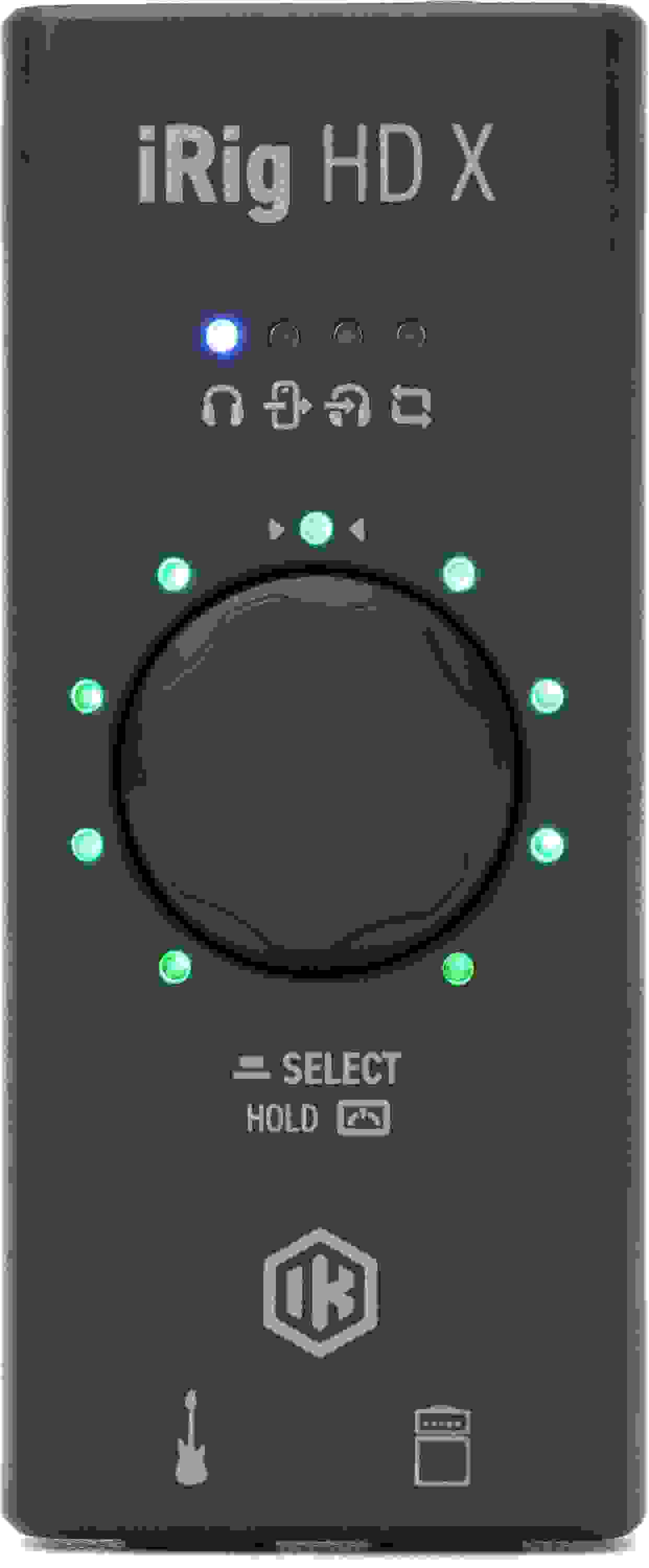 As the pro-level addition to IK Multimedia's iRig guitar interface series, the iRig HD X demonstrates all the capabilities of its predecessors, along with several modern enhancements. A 1/4-inch amp output jack integrates the iRig HD X seamlessly into your live rig. An updated enclosure features multicolor LED signal indicators, providing a handy visual of your signal levels as well as a quick-access tuner option! The iRig HD X's features are accessed by a simple control knob that allows full authority over your guitar's parameters in any performance situation. Complete with IK Multimedia's AmpliTube 5 SE and TONEX SE software for your studio computer, all your amplifiers and stompboxes are in the palm of your hand with the iRig HD X guitar interface.