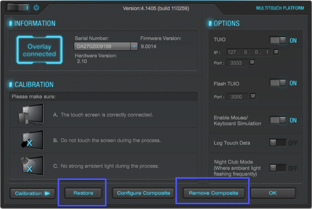Now, you will need to configure Multi-Touch for two RAVENs. Hit, “Configure Composite.” Follow the instructions on the white screens being: