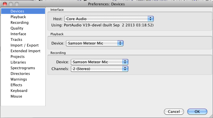 Once you have your USB microphone plugged in, you’ll need to open up a recording application. Some examples of recording applications commonly used with USB Microphones are GarageBand (Mac only), Audacity (free for Mac and PC), and Sonar LE (only available as bundled software), but you can use your USB mic with any recording application. Once you’ve opened your recording application, you’ll need to make sure your microphone is set up properly within the application itself. To do so, follow these steps: