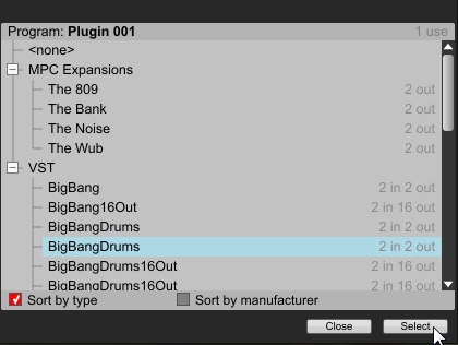 - In the window that opens, ensure that there is a check in the Sort by type field and click on the + sign next to the words VST or Audio Units to expand the menu to view all your available third-party plugins.