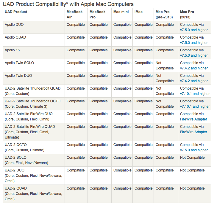 Unfortunately UAD-2 SOLO, DUO, and QUAD PCIe cards cannot be made to work with the new Mac Pros. (See table below for full UAD/Mac compatibility list.)