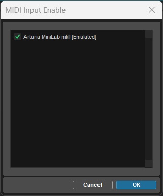 - Enable your MIDI device by clicking its checkbox.