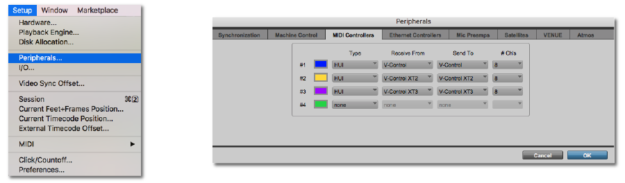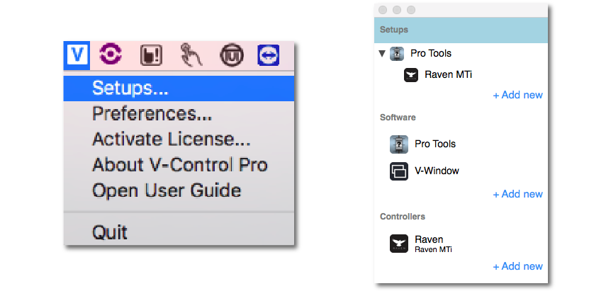 To begin, open V-Control Pro and your DAW. Then, confirm that the DAW is showing in the V-Control Pro setups. In this example, we will use Pro Tools as our DAW.