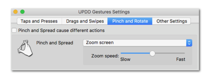 Turn on Pinch Zoom for gestures for macOS in the Accessibility tab. Follow the two-part instructions below.