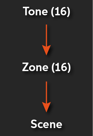 - You can add up to 16 Tones to an individual Zone, and 16 Zones per Scene.