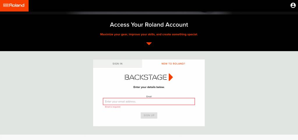 - Log in to your Roland Backstage account. If you don’t have one yet, you can create one here.