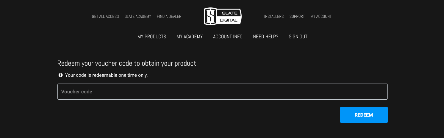 To access your Slate Digital software, you first need to register your Voucher Code. Open the Software Activation Instructions email from your Sweetwater Sales Engineer and copy the code. Follow the instructions below and paste the code to register your product. Once registered your software is downloaded from the My Products page.