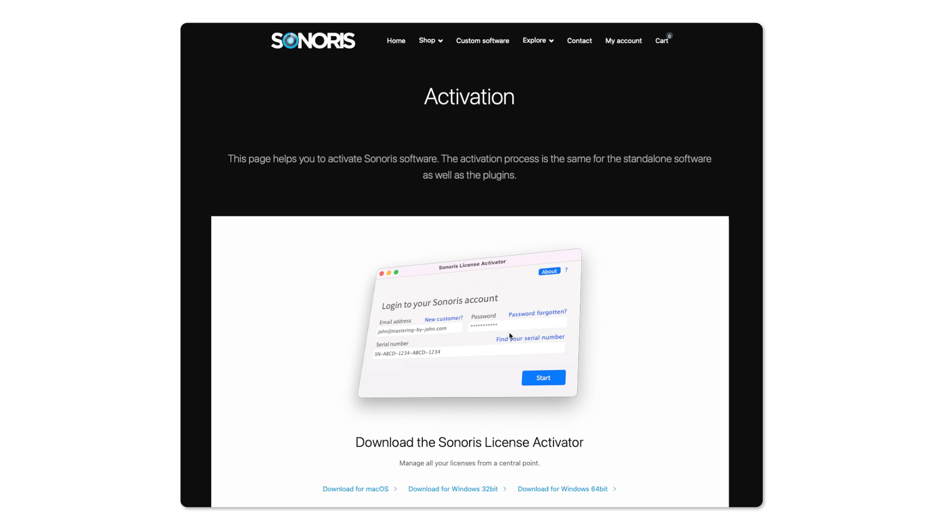 Sonoris software is downloaded from each Sonoris Product page. You will also need to download and install the License Activator app.