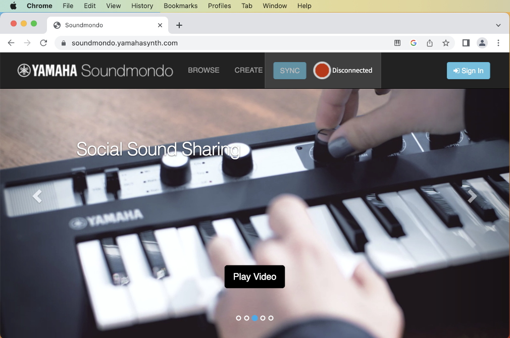 - Launch Google Chrome or another Web MIDI-compatible browser and go to https://soundmondo.yamahasynth.com/. Bookmark that link.