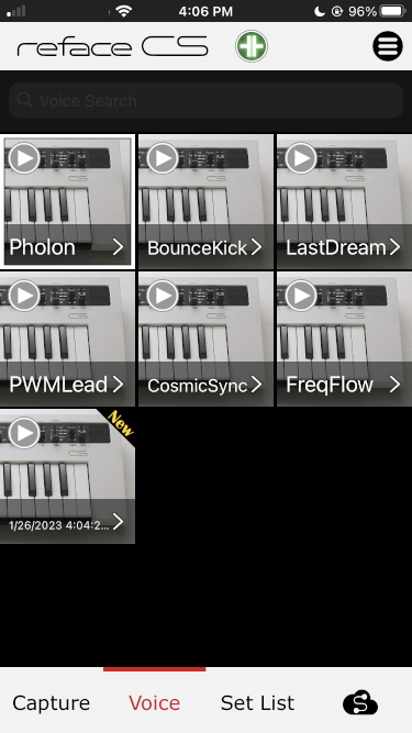 It will automatically recognize which model of reface you have connected and provide you with a short list of built-in presets. In the iOS app, presets are called “Voices.”