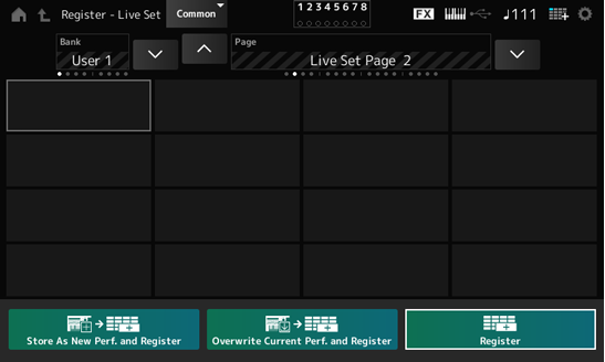 - Tap the slot you wish to add the Live Set and then press ENTER or one of the three store operations listed at the bottom of the display.