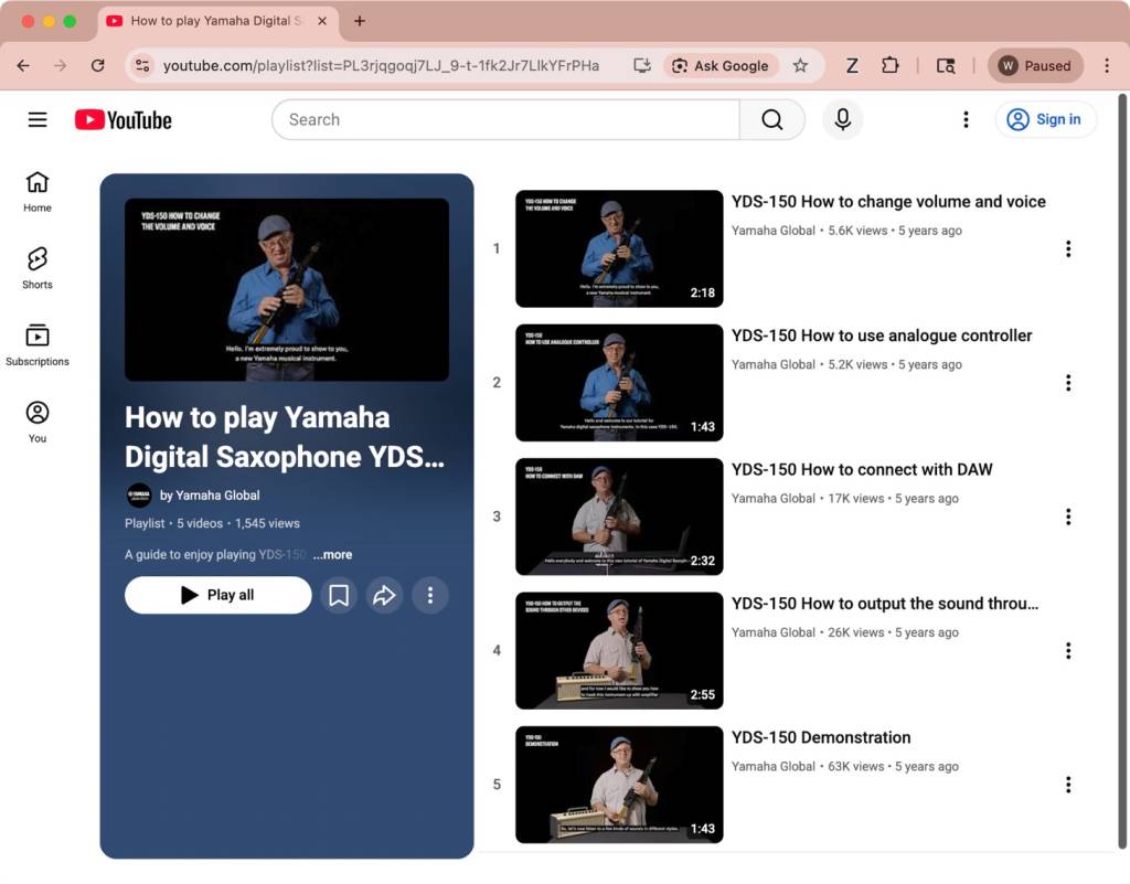 Yamaha Global provides a YouTube playlist of short tutorials that show you how to set up and play the YDS-150.