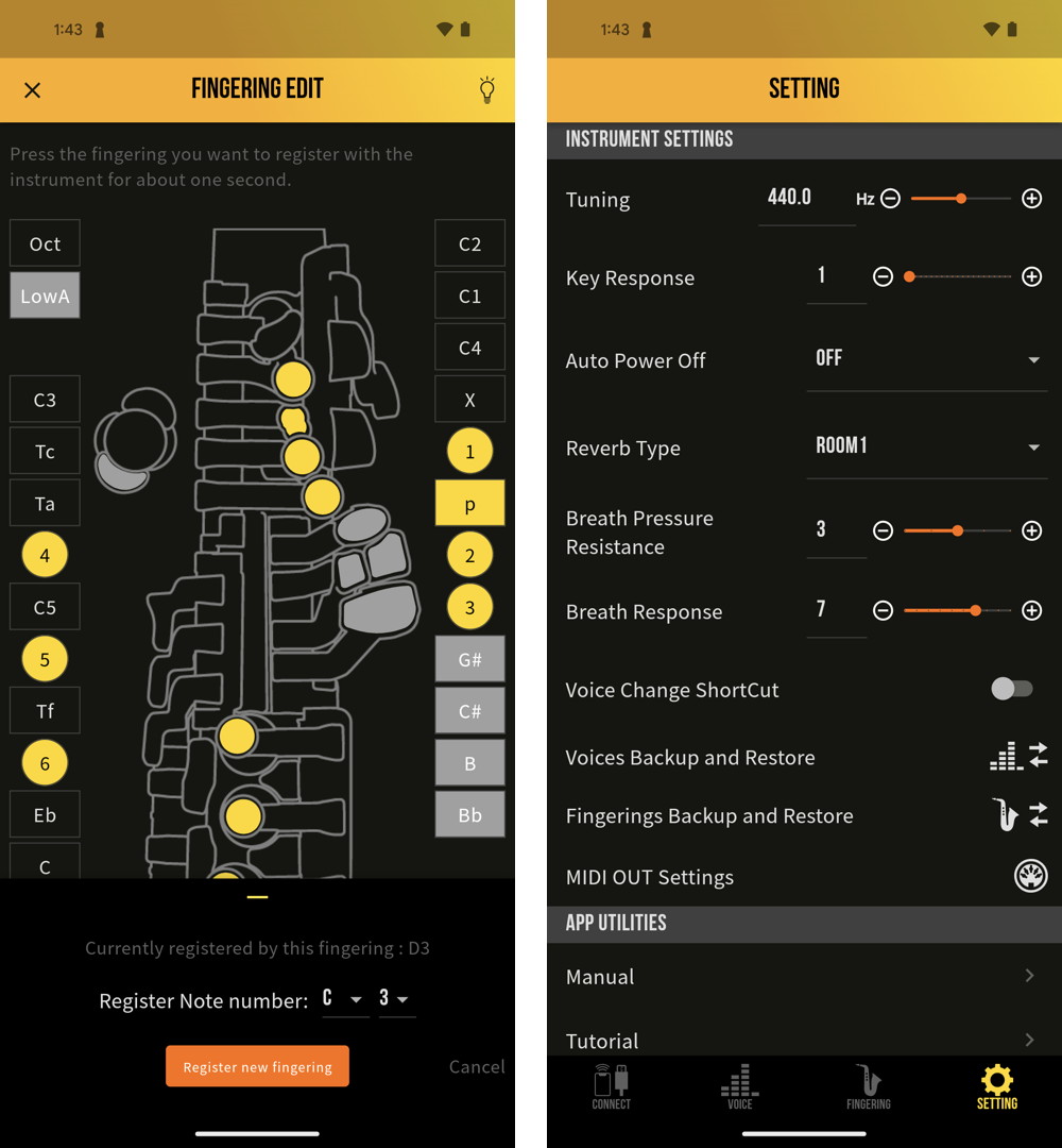 The Yamaha YDS Controller app for iPhone and Android expands the range of sound creation and makes it easy to adjust parameters, including customizing fingerings.