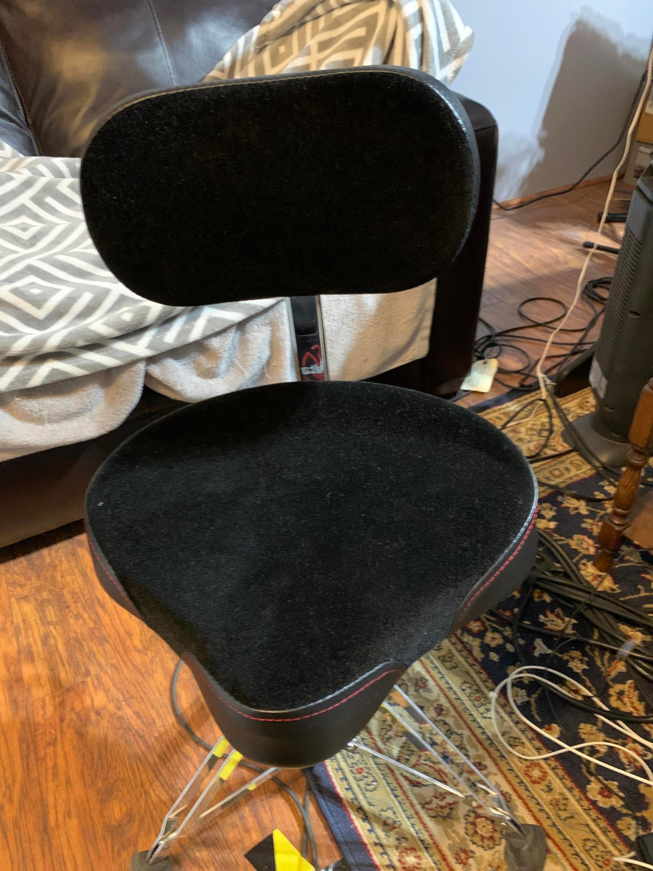 The highest quality drum throne that SW offers. It’s cushioned just right: seat & back. It is also more of a velour material that covers both seat & back rest. Buyer pays shipping. Couldn’t get any better than this… and it pays to be comfortable while you play. Will use GE discounted FedEx labels.
