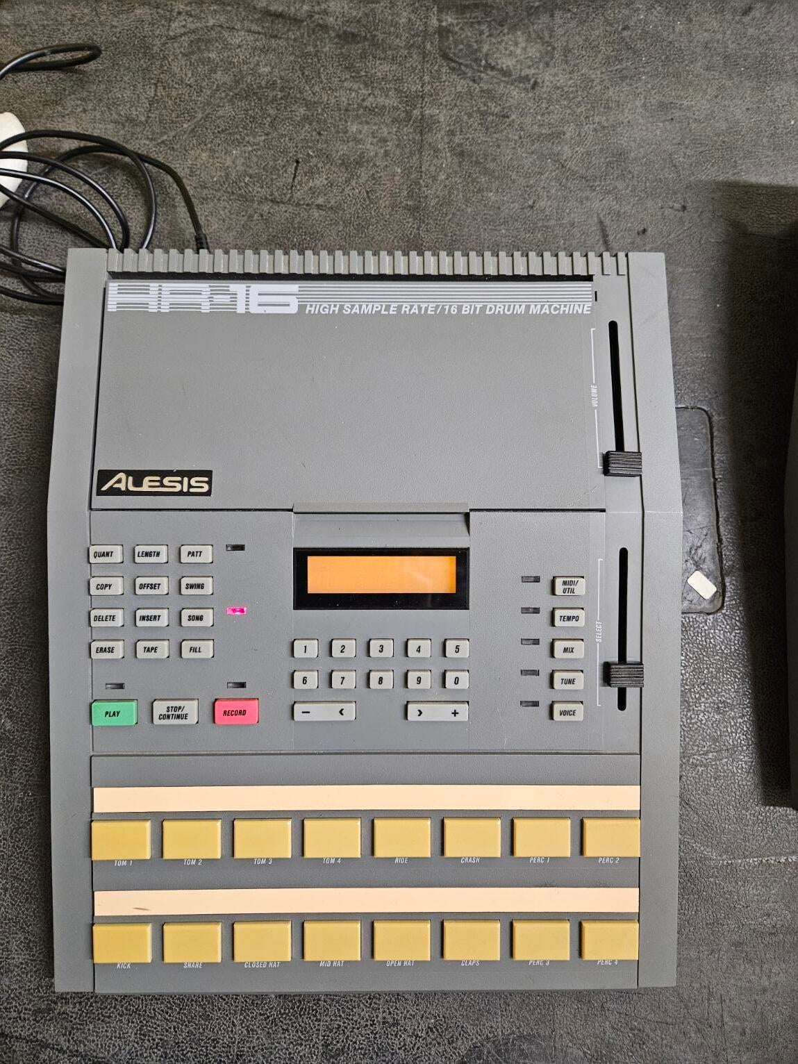Alesis HR 16-High Sample Rate 16 bit drum machine. Lacks power cord. Owned by late George Powell, formerly of Pure Prairie League. No power source. Powers up. As a bonus, I'll toss in free any cord (see my other listings) that I am currently listing for $30 or less. Just let me know via message once you buy this.