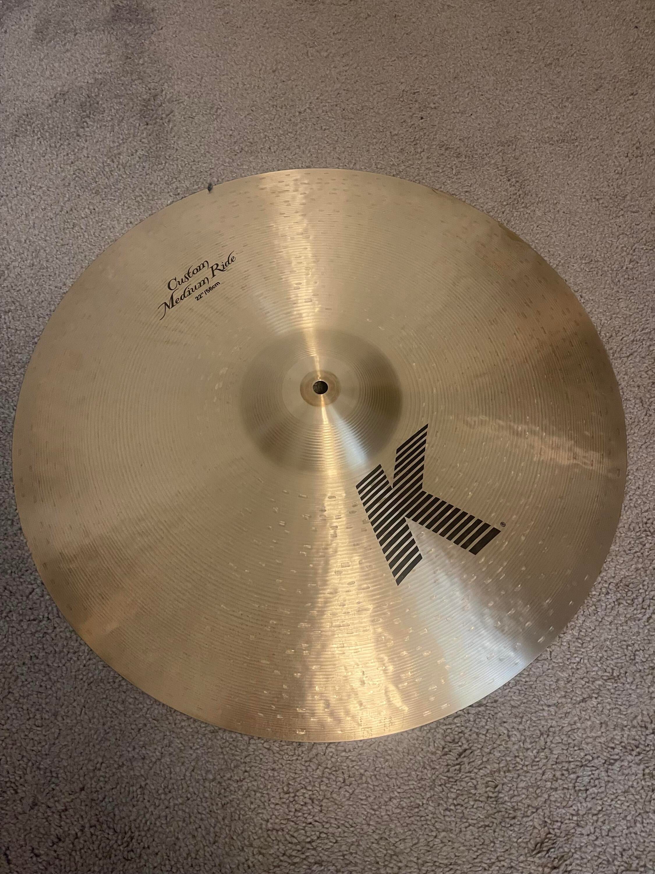Hello, this is the Zildjian K Custom Medium Ride! This excellent Ride is only a few months old and has great crashability, stick definition and full bell sound. The custom part refers to the overhammering after being hammered a first time to add great dark tones, definition and crashability. I won’t be charging for shipping on this beast of a Ride. There are no defects or problems with it at all. I’ve kept great care of it! Great for any style of music. With the Medium weight, it has a stronger bell and more cuttibility. Who will add this classic K Custom greatness to their set? And I’m tellin’ you, this Ride is like almost mint condition! If there was a condition response that was in the middle of mint and excellent, this one is there! I’m telling ya, pretty dang new!