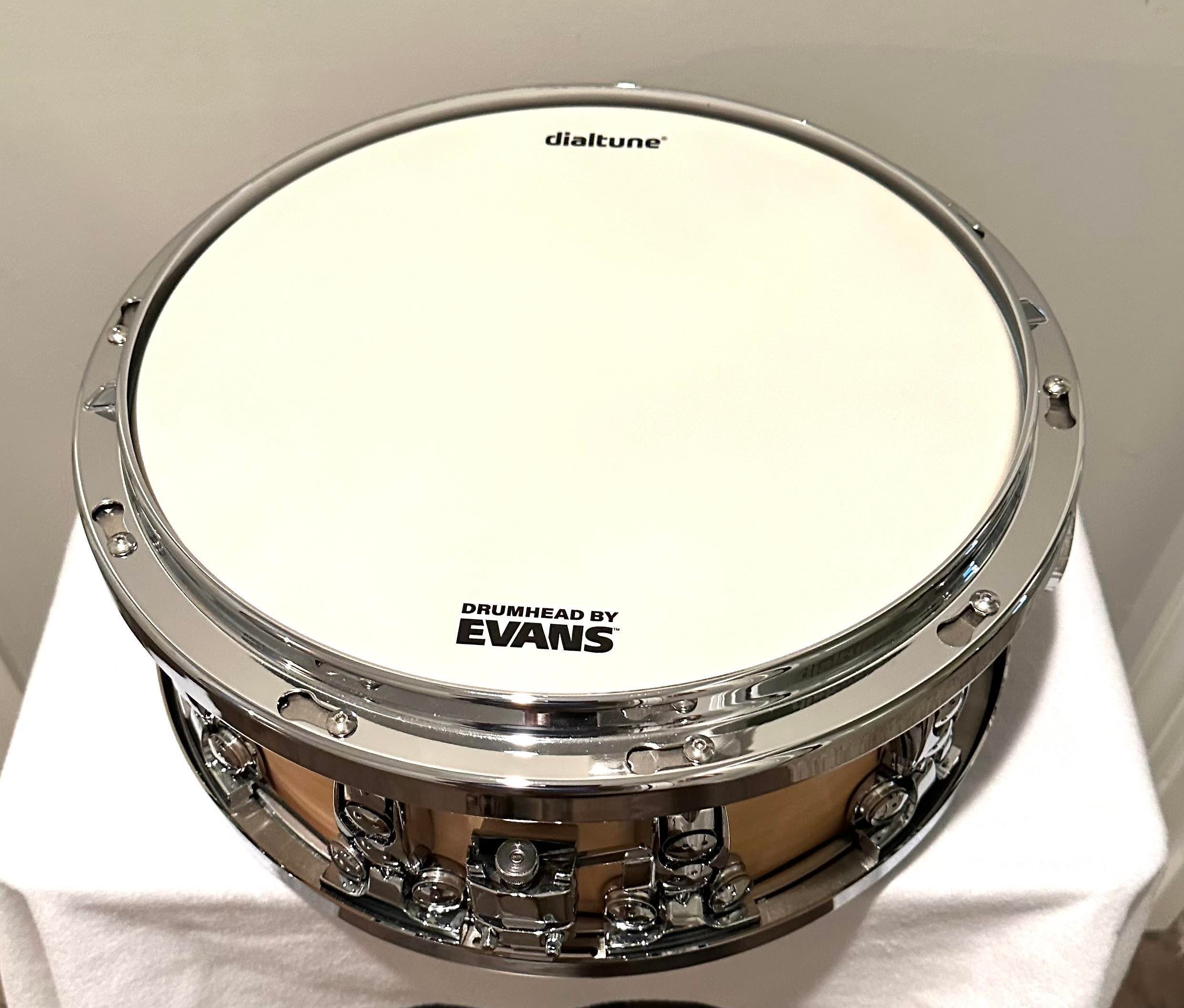 14x6.5 Maple DialTune Snare drum in mint condition in original packing. An extra tensioning cable is also included.